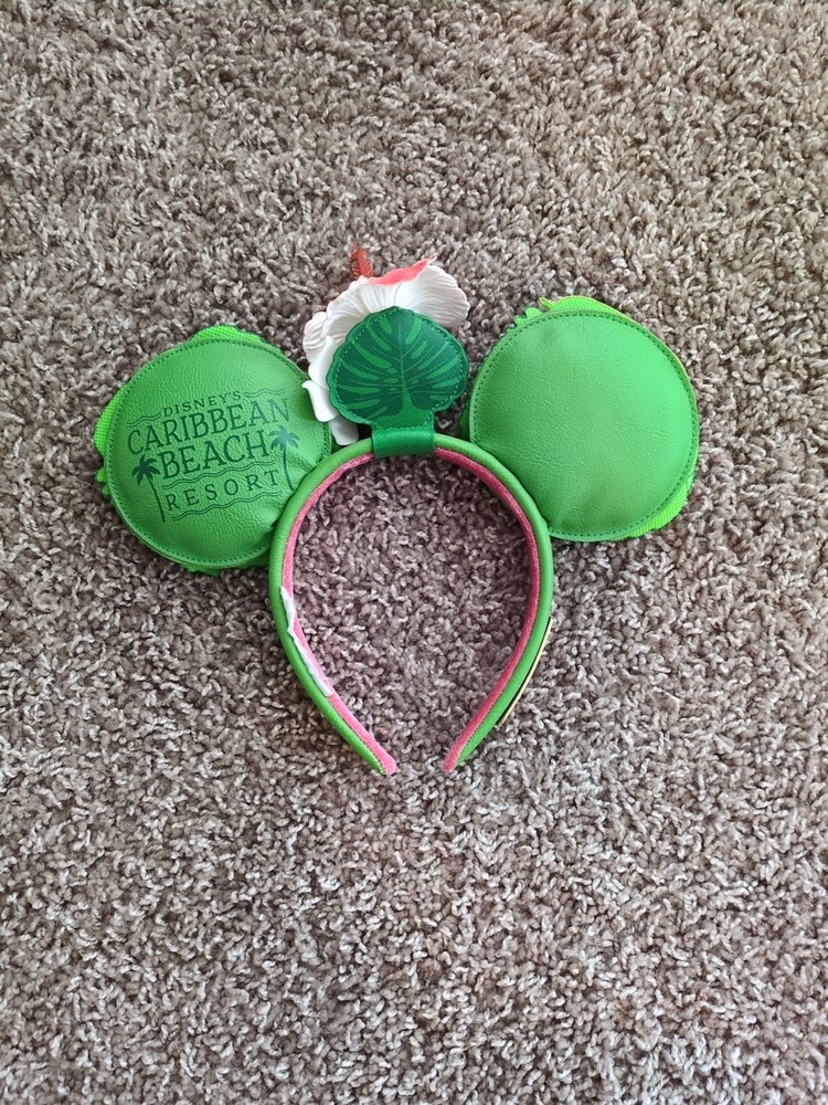 The 2021 Walt Disney World Caribbean Beach Resort Tropical Ears Headband is a collectible accessory. Suitable for all ages, this headband is perfect for both adults and children who are fans of the Disney franchise. With its tropical theme and unique design, it makes a fun and stylish addition to any Disney collection. These ears are used but in good condition
