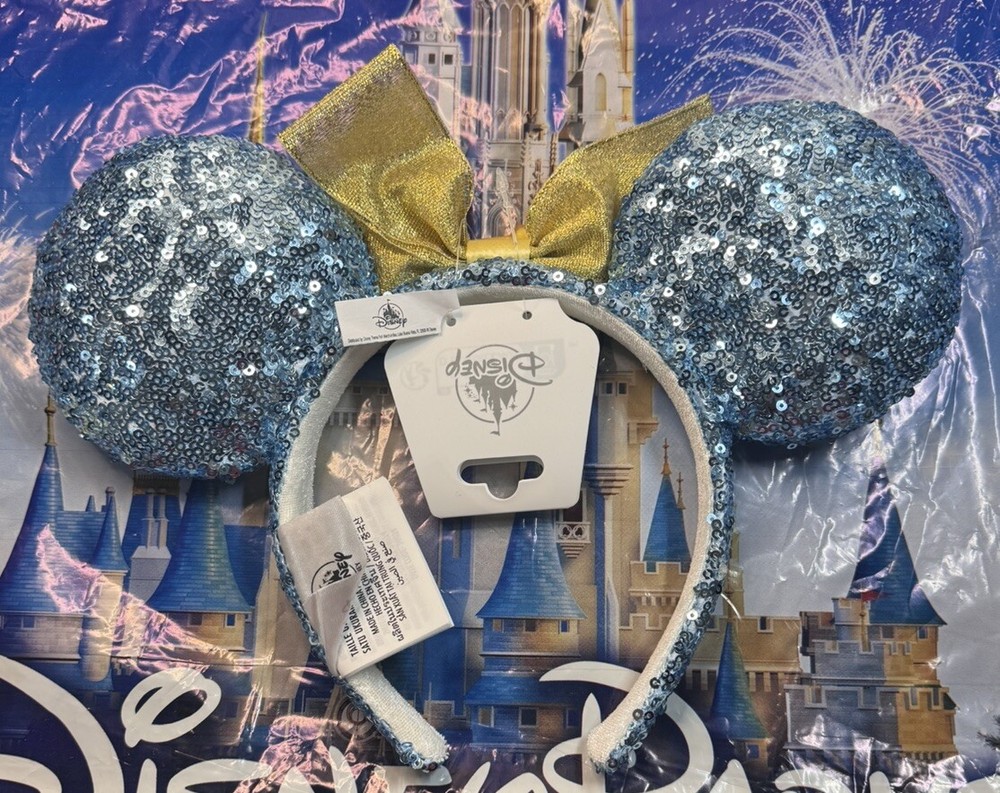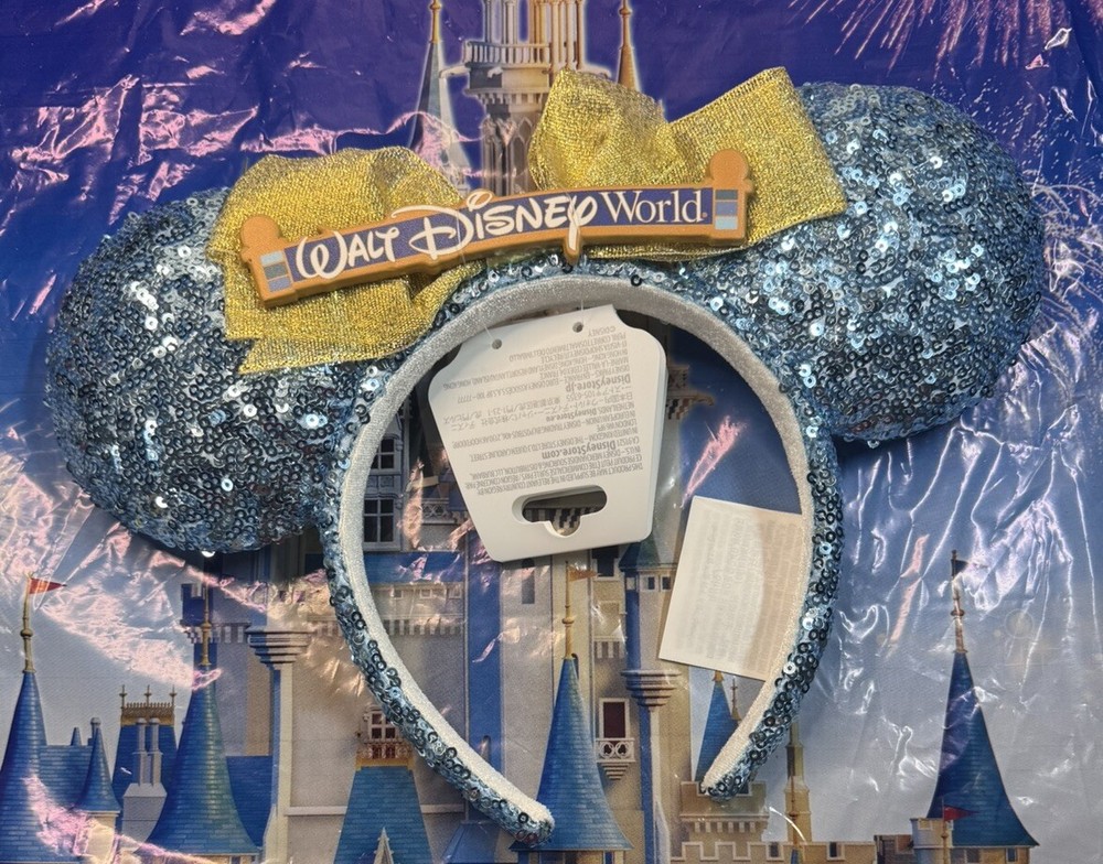 2024 Disney Parks Walt Disney World Entrance Sign Blue Glitter Ears Headband New