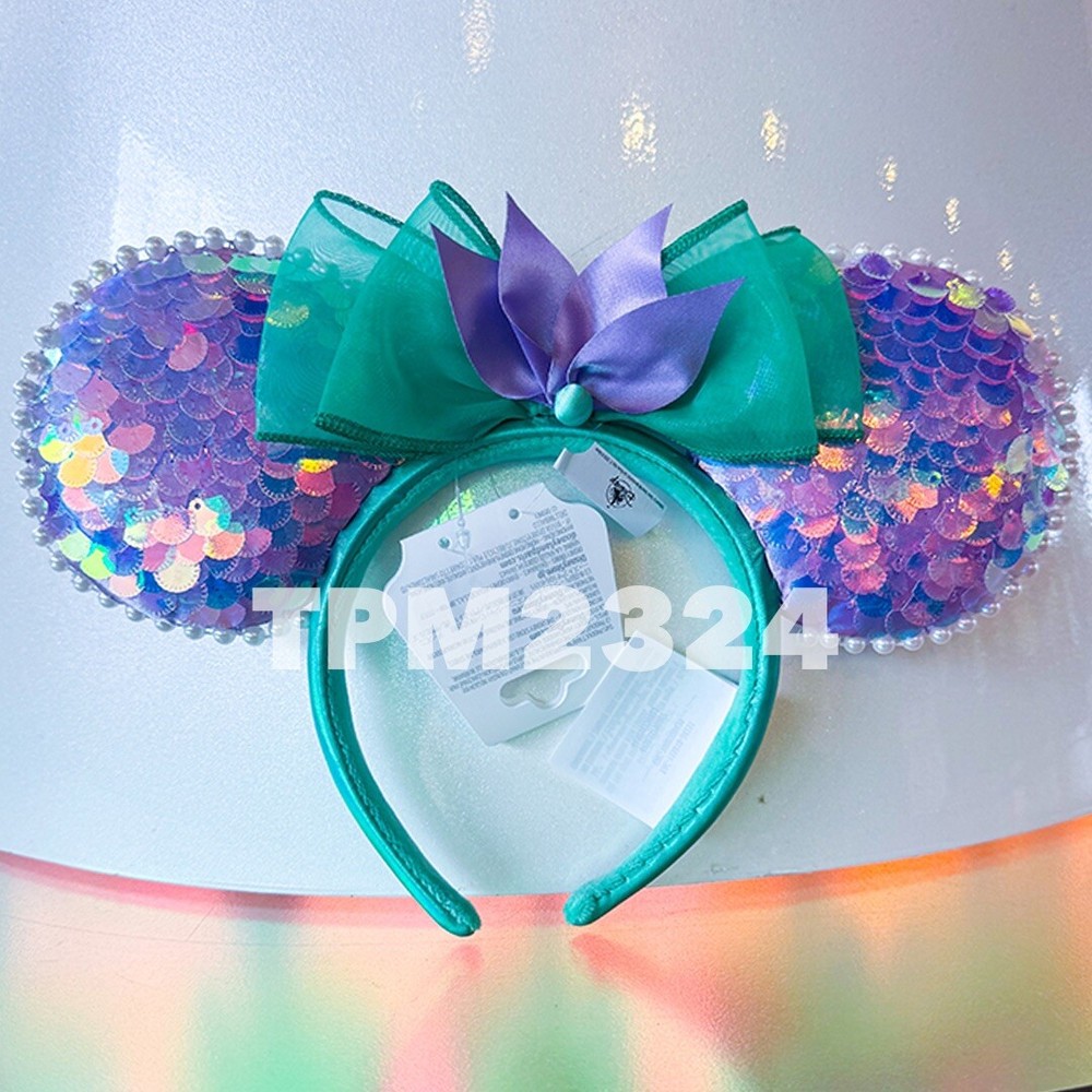 The 2025 Disney Parks Little Mermaid Ariel Purple Ears Headband is a stylish accessory featuring Ariel from Disney's "The Little Mermaid." This Disney headband is designed in a vibrant purple color with a multi-colored main section, perfect for adding a touch of magic to any outfit. It is part of the Disney Parks collection, making it a special and collectible item for fans of the franchise. Perfect for wearing to Disney Parks or adding a touch of Disney magic to your everyday look.