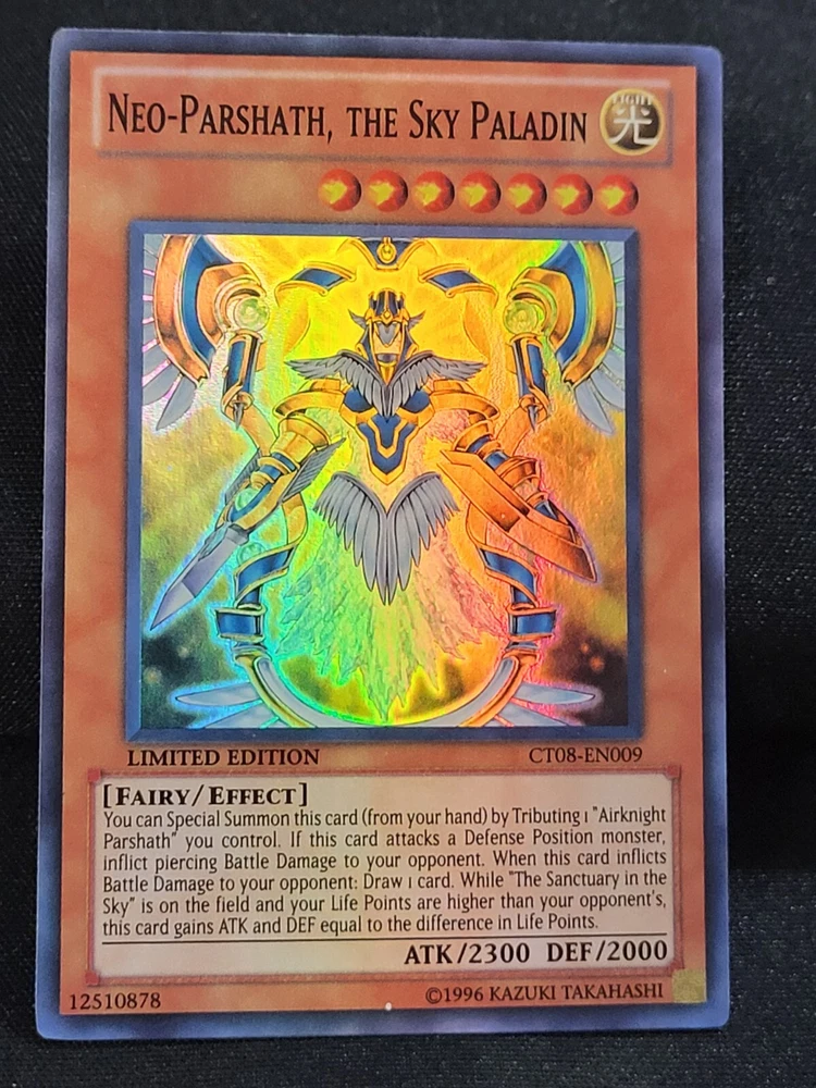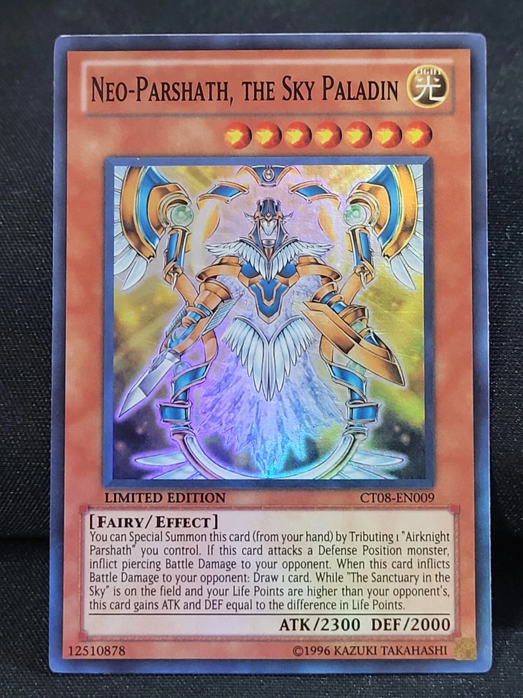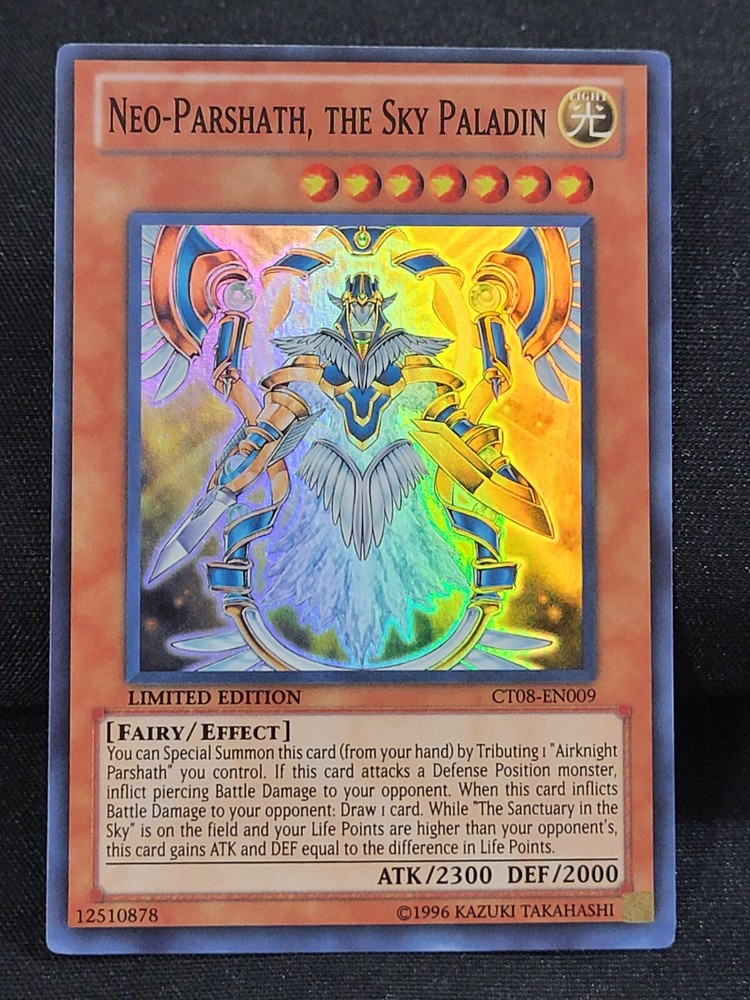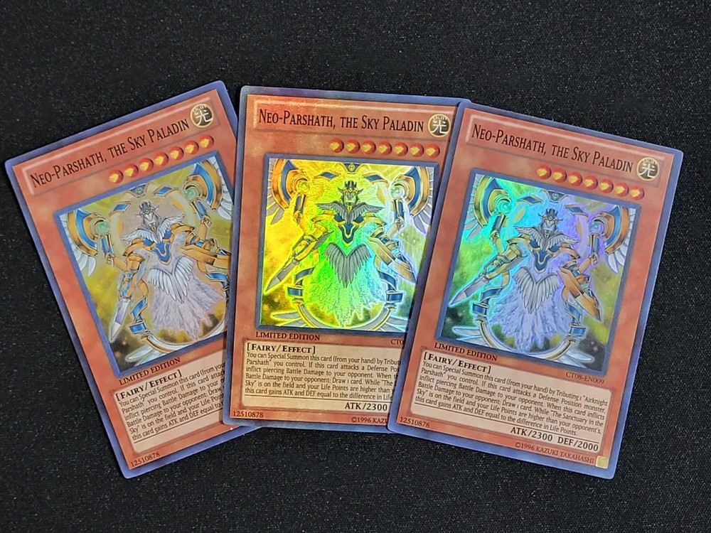 You are bidding on 3 X YuGiOh Neo-Parshath, The Sky Paladin CT08-EN009 Limited Super Rare LP Please see all pictures. Thank you. If you need more pictures or have any other questions, please feel free to ask. International bidders, please look at global shipping details before bidding. Thank you, and happy bidding.