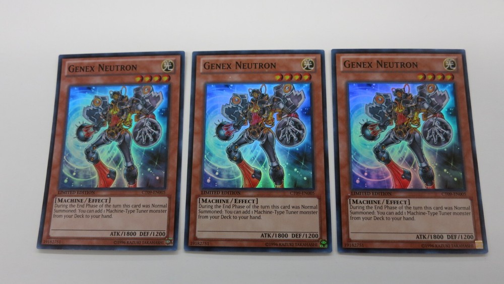 Welcome to Great_Deals_On_Collectibles.We are in the retail hobby sector and have been since 1991.We sell sportscards,gaming cards,comic books,action figures,plush toys and various other hobby related items.We have been on Ebay since 1999.We try to make buyers experience on EBAY as satisfying as possible.Our feedback on Ebay speaks volumes.Every item we have up for auction is LIVE and ready to be shipped upon payment. If you have any questions feel free to contact us,thanks for showing interest. YUGIOH You are bidding on 3x GENEX NEUTRON LIMITED EDITION CT09-EN005 SUPER RARE YUGIOH NM / UNPLAYED