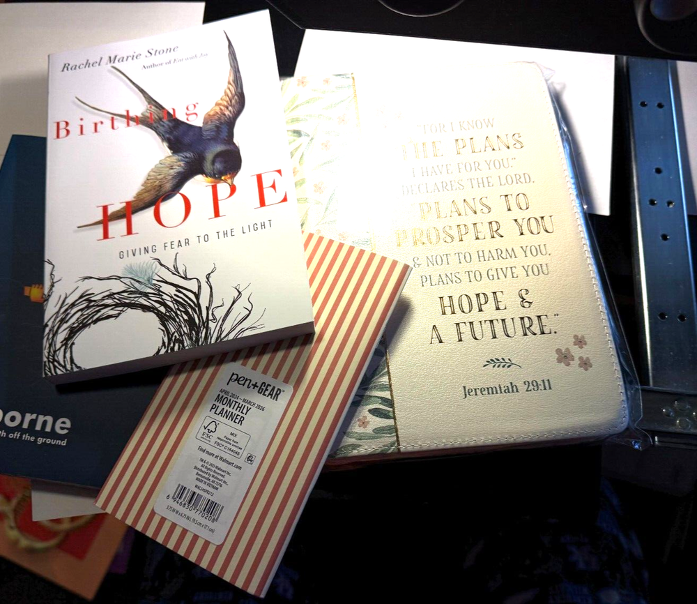 4 Gift Christian Items: journal: JERIMIAH 29:11 HADBACK SEALED IN FACTORY PLASTIC WRAY FAUX LEATHER HB NEW VERY NICE DAY PLANNER: NEW APRIL 2024 to march 2926 small softcover fits in pocket AIRBORNE BOOK BY ZAYAS: GETTING YOUR FAITH OFF THE GROUND SOFTCOVER NEW BOOK: FIRTHING HOPE: GIVING FEAR ROI THE LIGHT BY STONE NEW SOFTCOVER Zipper Journal 333 pages with Bible Scripture verses oneach page bottom - it is sealed in plastic to protect in transit - Jer. 29:11 on front cover JOURNAL - Each page has a different Bible verse to encourage daily.A great gift for yourself or a friend or family member. . Product Description Faux leather gift journal with debossed design and wrap around zip closure Art and designer lettering; inspiring design 336 lined pages with Scripture Ribbon marker 8.75" x 6.5" "For I know the plans I have for you" declares the Lord. Plans to prosper you and not to harm you. Plans to give you hope and a future" Jeremiah 29:11 Patterned border design Product Information Title: For I Know The Plans Zipper Journal Format: Gift Number of Pages: 336 Vendor: Christian Art Gifts Publication Date: 2021 Weight: 1 pound 4 ounces ISBN-13: 9781642725926
