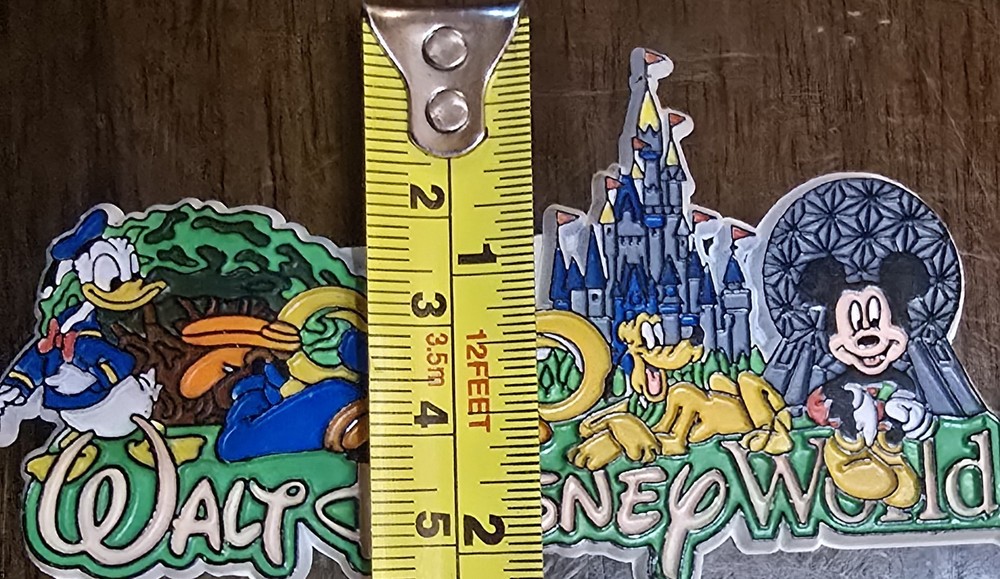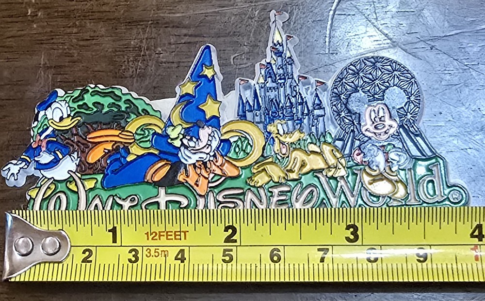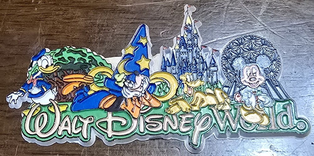 This 4" vintage magnet features Mickey Mouse in his iconic Sorcerer's Hat, with the Epcot Castle in the background, representing Walt Disney World. Part of the Disney franchise, this souvenir is a collectible item from the contemporary era. Perfect for Disney enthusiasts and collectors, this magnet captures the magic and charm of the beloved theme park, making it a nostalgic piece of memorabilia for fans of Mickey Mouse and the Disney brand.