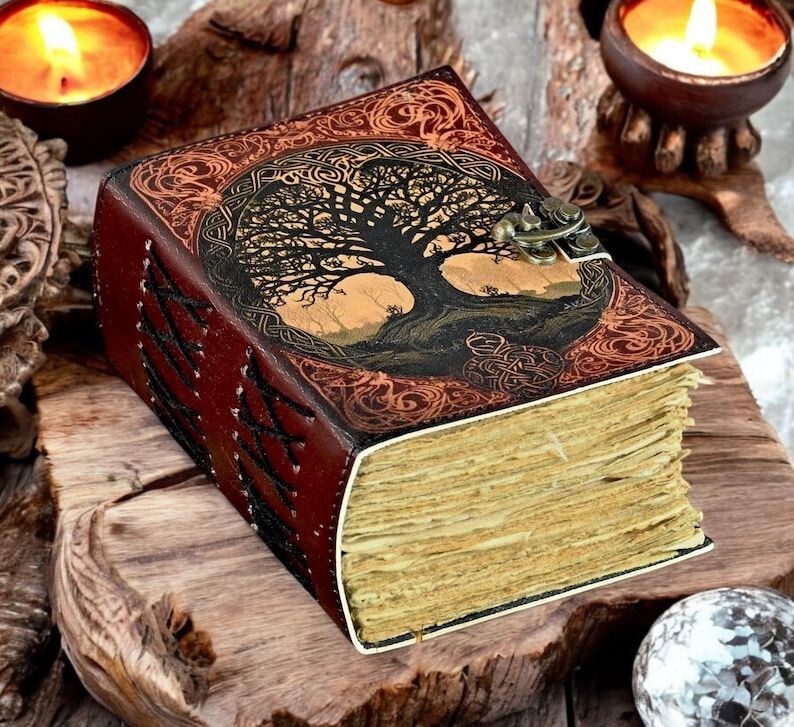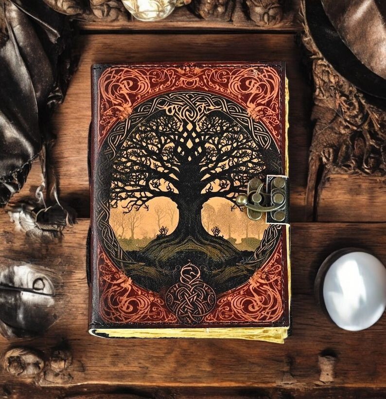 400 page Tree of Life Leather Journal Gothic Notebook Tree of life Grimoire Print - Vintage Handamde Journal Book of Shadows Witchcrafts Journal Gifts for Men Embrace the timeless elegance of The Raven Leather Journal Notebook by HandmadeJournalHub, a perfect blend of classic craftsmanship and modern functionality. Handcrafted with meticulous attention to detail, this journal features high-quality leather that not only adds a touch of sophistication but also ensures durability for years to come. Key Features: The Tree of life Leather Journal Gothic Notebook - Vintage Handamde Book of Shadows with Name, Personalized Gifts for Men, Dark Academia Gift, Handmade Paper: Each page of The Raven Leather Journal Notebook by HandmadeJournalHub is made from premium handmade paper, providing a unique texture and a high-quality writing experience. Perfect for writing, sketching, or jotting down your thoughts and ideas. Available in All Sizes: 7x5 inches 8x6 inches 10x7 inches 13x10 inches Whether you need a compact notebook for on-the-go notes or a larger journal for detailed entries and sketches, The Raven Leather Journal Notebook by HandmadeJournalHub is available in all sizes to suit your needs. Secure Brass C-Lock: The journal is equipped with a vintage brass C-lock, ensuring that your thoughts, ideas, and sketches remain secure and private. The elegant lock not only adds a layer of protection but also enhances the overall aesthetic of the journal. Ideal for writers, artists, students, or anyone who appreciates fine craftsmanship, The Raven Leather Journal Notebook by Taj Handicrafts is more than just a place to write—it's a companion that inspires creativity and captures memories. -- Junk Journal -- junk journals handmade -- Dungeons and Dragons Journal - DND -- Mothers Day Gift -- Nature journaling -- Instagram photobook or scrapbook -- Teen journal or girls' diary -- Travel diary -- Weight Watchers Records -- New baby records or journal -- Letters to your loved ones -- Letters to give to your children when they grow up -- Daily Notepad or Bullet Journal -- Scheduling and appointment reminders -- Life moments tracker -- Vacation scrapbook -- Story writing -- Notebook to write in
