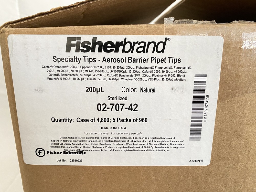 New case of 4800 tips (5 packs of 960). Volume (Metric) 200 μL Sterility - Sterile Autoclavable - Autoclavable Length (Metric) 5.08cm Tip Style - Barrier Tip Filtered - Filtered Color - Natural Length (English) 2 in. Format - Hinged Rack For Use With (Equipment) - Universal Fit Pipettor Use eBay Shopping Cart to combine items from multiple listings. In the case of multiple quantity listings, the pictured item represents the worst condition of available items. Thanks for looking! Visit our store! Biotech Bargains CT Categories Glassware Lab Bench Supplies Lab Equipment Other Plasticware About Us Biotech Bargains specializes in the great prices on new and used laboratory glassware, consumables and equipment. Our inventory is sourced through liquidations and surplus from the biotechnology and pharmaceutical industries. We operate eBay stores out of Bristol, Connecticut (biotechct) and West Sacramento, Calilfornia (biotechca). Thanks for checking us out! _gsrx_vers_1547 (GS 9.4.2 (1547))