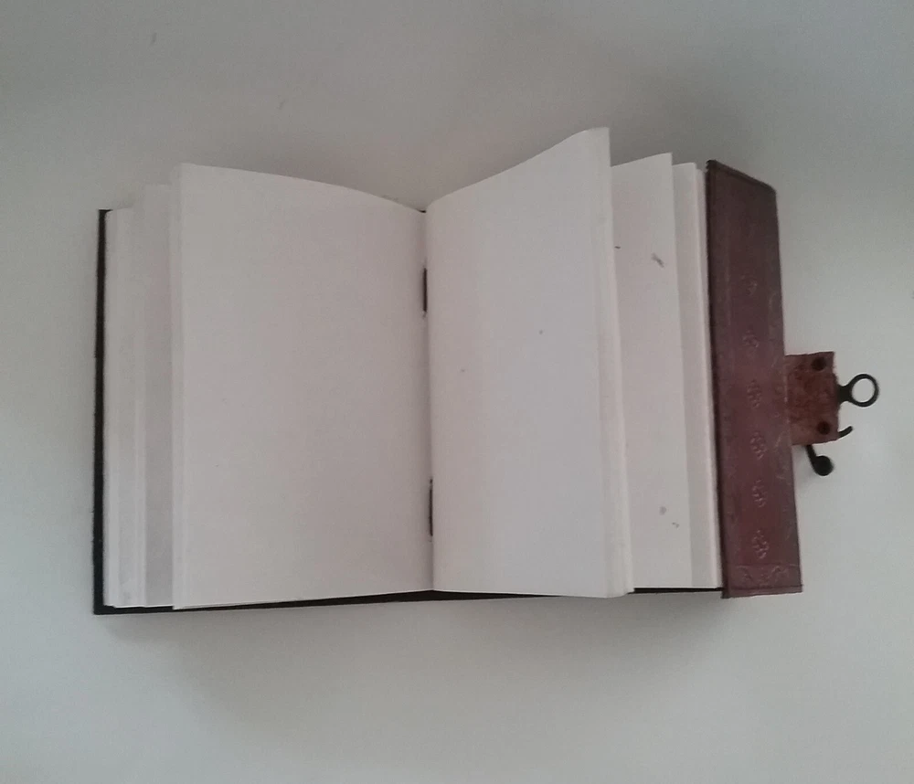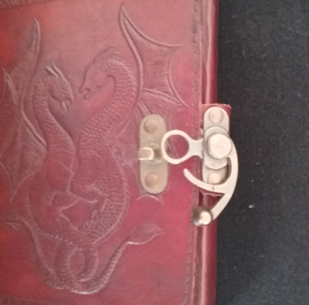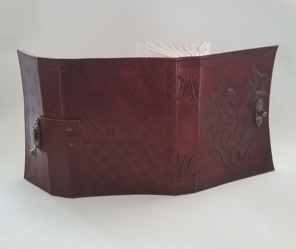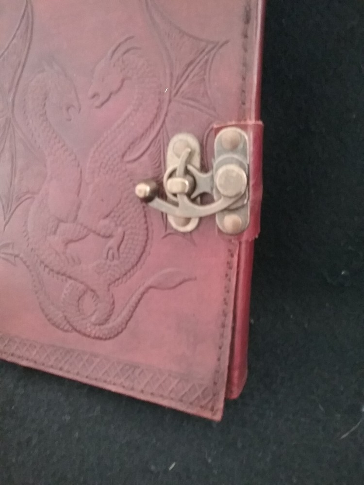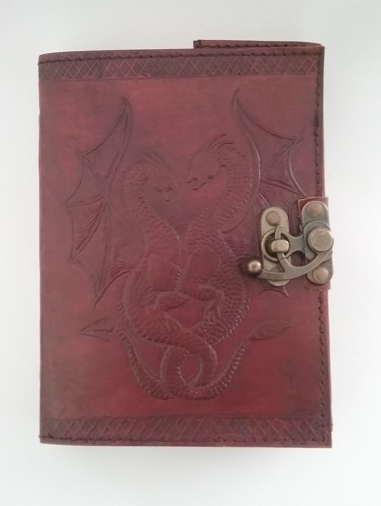 5.5X7x1.5" EMBOSSED LEATHER BOUND DOUBLE DRAGON Journal Writing Sketch Book. Inside this 1.5 inch thick leather bound journal you will discover thick blank off-white plain paper. I have one copy that is unwrapped and that is the one pictured. It was never used. I have 3 more of the exact same item style. They are still wrapped in their original factory packaging. There are 4 Journals total. You can buy one or more, just let us know so we can get the correct shipping. We always ship quickly.