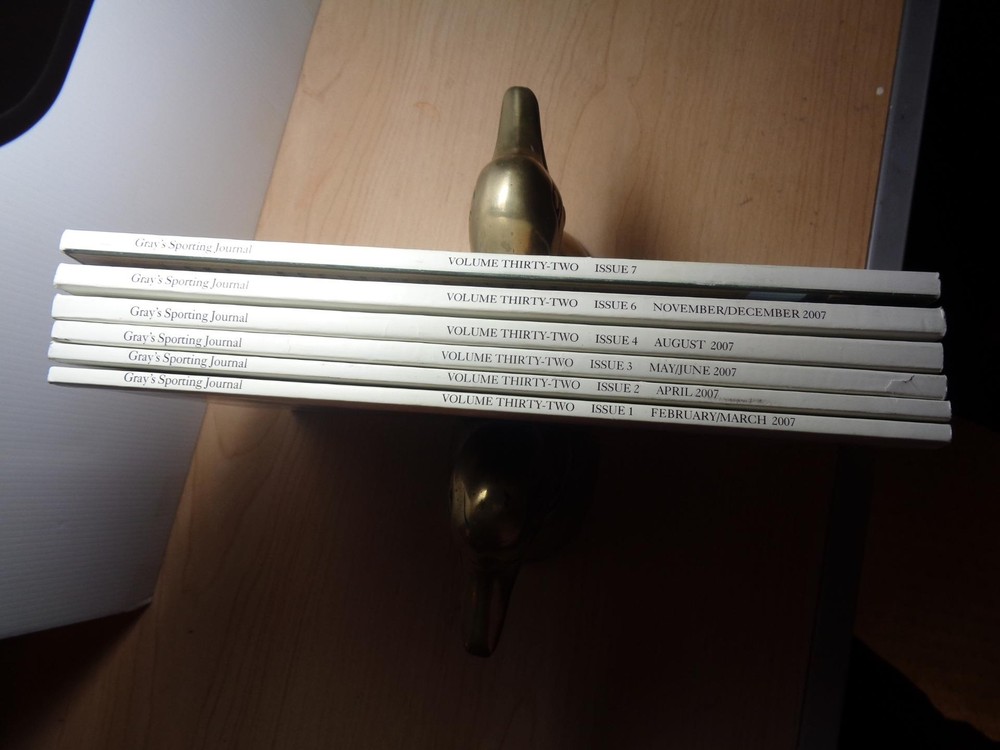 6 volume 2007 GRAY'S SPORTING JOURNAL magazine #1,2,3,4,6,7 hunting fishing 6 volume 2007 GRAY'S SPORTING JOURNAL magazine #1,2,3,4,6,7 hunting fishing Click images to enlarge Description 6 VOLUME SET OF GRAY'S SPORTING JOURNAL, 2007, ISSUES #1,2,3,4,6,7 ************************************ GRAY'S SPORTING JOURNAL was established in 1975. The magazine is part of MCC Magazines, LLC, a subssidiary of Morris Commmunications, which also owns publications such as AMERICAN ANGLER, FLY TYER, and SALTWATER FLY FISHING. The companyacquired GRAY'S SPORTING JOURNAL IN 1989. The magazine is published seven times a year and is headquartered in Augusta, Georgia. The JOURNAL is a magazine dedicated to the persuit of outdoor recreation, with an emphasis on hunting and fishing. It is a consciously literary publication, using a "blind reader" to select articles, poems, and stories for publication. The "blind reader" receives only the text of the submitted work, not the name of the author, thus theoretically preventing publication of works based on fame only. The company uses "perfect binding machines" and always features a work of outdoor art on its cover. GRAY'S includes poetry, lenghthy works of fiction, fine art, and photo journals in the same issue. ********************************************* THE MAGAZINE'S ARE IN VERY GOOD CONDITION. ******************************** NOTE: any glare is from my camera, not the book. Pictures sell! Auctiva offers Free Image Hosting and Editing. 300+ Listing Templates! Auctiva gets you noticed! The complete eBay Selling Solution. Track Page Views With Auctiva's Counter