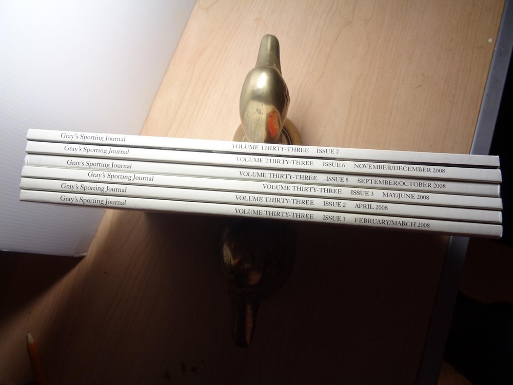 6 volume 2008 GRAY'S SPORTING JOURNAL magazine #1,2,3,5,6,7 hunting fishing 6 volume 2008 GRAY'S SPORTING JOURNAL magazine #1,2,3,5,6,7 hunting fishing Click images to enlarge Description 6 VOLUME SET OF GRAY'S SPORTING JOURNAL, 2008, ISSUES #1,2,3,5,6,7 ************************************ GRAY'S SPORTING JOURNAL was established in 1975. The magazine is part of MCC Magazines, LLC, a subssidiary of Morris Commmunications, which also owns publications such as AMERICAN ANGLER, FLY TYER, and SALTWATER FLY FISHING. The companyacquired GRAY'S SPORTING JOURNAL IN 1989. The magazine is published seven times a year and is headquartered in Augusta, Georgia. The JOURNAL is a magazine dedicated to the persuit of outdoor recreation, with an emphasis on hunting and fishing. It is a consciously literary publication, using a "blind reader" to select articles, poems, and stories for publication. The "blind reader" receives only the text of the submitted work, not the name of the author, thus theoretically preventing publication of works based on fame only. The company uses "perfect binding machines" and always features a work of outdoor art on its cover. GRAY'S includes poetry, lenghthy works of fiction, fine art, and photo journals in the same issue. ********************************************* THE MAGAZINE'S ARE IN VERY GOOD CONDITION. ******************************** NOTE: any glare is from my camera, not the book. Pictures sell! Auctiva offers Free Image Hosting and Editing. 300+ Listing Templates! Auctiva gets you noticed! The complete eBay Selling Solution. Track Page Views With Auctiva's Counter