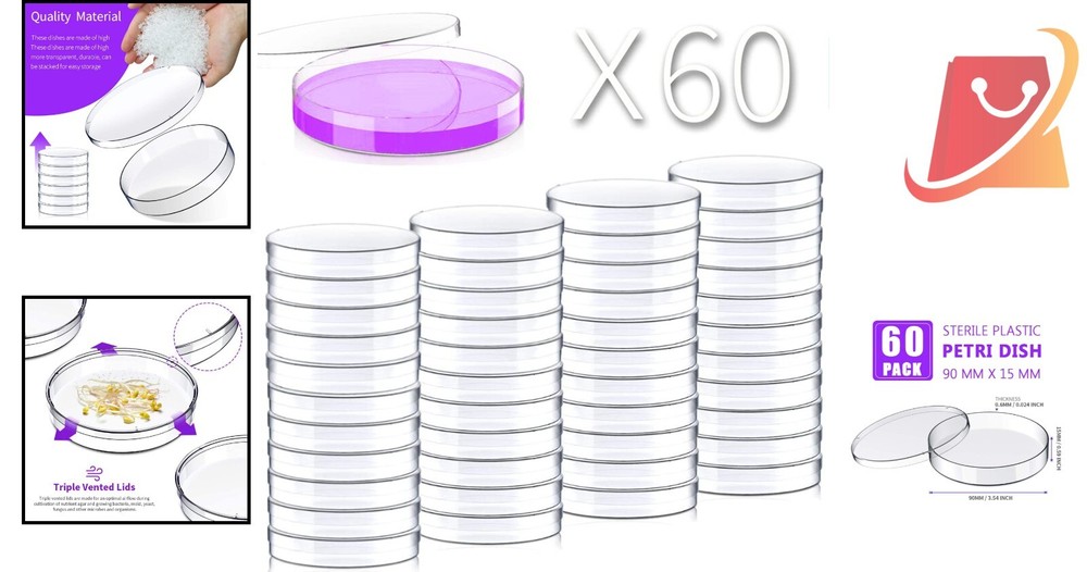 60 Pack Sterile Plastic Petri Dishes 90mm Vented For Lab Analysis Research < class="slides"> ‹ › ‹ › ‹ › ‹ › ‹ › ‹ › ‹ › 60 Pack Sterile Plastic Petri Dishes Transform your laboratory experience with our 60 Pack of Sterile Plastic Petri Dishes, designed for precision and reliability in various scientific applications. Product Specifications: Quantity: 60 pieces Dimensions: 90mm (diameter) x 15mm (depth) Material: Ethylene oxide sterilization Features: Vented lids for optimal gas exchange Key Features: Sterile Assurance: Each dish is individually sterilized to prevent contamination, providing peace of mind for researchers and practitioners alike. Vented Design: Vented lids allow for superior breathability, making them ideal for a variety of laboratory analyses. Durable Construction: Crafted from high-quality materials to withstand various laboratory conditions. Ease of Use: Ready-to-use packaging ensures convenience in any research process. Applications: Medical Laboratory Analysis Biological Research Scientific Investigations General Training and Experiments Why Choose Our Petri Dishes? Whether you're conducting important medical research or engaging in biological training, our Sterile Plastic Petri Dishes are an essential addition to your laboratory toolkit. With their reliable sterilization, thoughtful vented design, and robust quality, they assure optimal performance for all your scientific endeavors. Choose our Petri Dishes and experience excellence in laboratory analysis. Order your 60 Pack today and elevate your research capabilities! Shipping Free & Fast Shipping - We offer free shipping to most of the USA with a normal delivery time of 3-7 days. However, due to the current situation, additional delivery time (up to 3 weeks) may be required for some items. Alternative Carriers - We may use alternative carriers (e.g. USPS, FedEx, UPS, etc.) to ensure your package arrives safely and on time. Due to the use of multiple carriers, we are unable to provide a tracking number automatically. Handling Time - Orders are processed and shipped within 1-2 business days of receiving cleared payment. Shipping Restrictions - Shipping to Alaska, Hawaii, Puerto Rico, Guam, and other US territories may incur shipping charges or delivery restrictions. Please contact us before ordering, or your order can be refunded/cancelled. State Restrictions - There may be restrictions based on your state of purchase. For example, certain items may not be shipped to California due to state regulations. Contact for Tracking Updates - If you require tracking updates or have any concerns about the delivery of your order, please feel free to contact us, and we will be happy to assist you. Return 30-Day Hassle-Free Returns - We want you to be completely satisfied with your purchase. If you are not, you can return the item within 30 days of receiving it for a full refund or exchange. Easy Return Process - To start a return, simply contact us and we will provide you with a prepaid return shipping label and detailed instructions. Restocking Fee - There are no restocking fees for returns. However, the buyer is responsible for return shipping costs if the return is not due to a seller's error. Refund Processing Time - Refunds will be processed within 5 business days of receiving the returned item in its condition. Payment We accept all major credit cards, PayPal, and Apple Pay for your convenience. Your payment information is secure and encrypted to ensure a safe and seamless transaction. Please complete your payment within 3 days of purchase to avoid any delays in shipping. Feedback Your feedback is extremely important to us. We strive to provide the best products and customer service possible. If you are satisfied with your purchase, please take a moment to leave us a positive review. If you have any concerns or issues with your order, please contact us before leaving negative feedback. We are committed to resolving any problems and ensuring your satisfaction. Contact Us If you have any questions or concerns, please feel free to out to our customer support team. You can contact us through the eBay messaging system. We are available Monday to Friday, 9:00 am to 5:00 pm EST, and we will do our best to respond to your inquiry within 24 hours. Buy it now and enjoy a pleasant shopping experience! MPN: Petri_Dishes Model: Petri Dishes Diameter: 90mm Depth: 15mm Unit Quantity: 60 Intended Use/Discipline: Biological Laboratory,Medical Laboratory,Scientific Research,Education,General Training Material: Polystyrene Unit Type: Unit