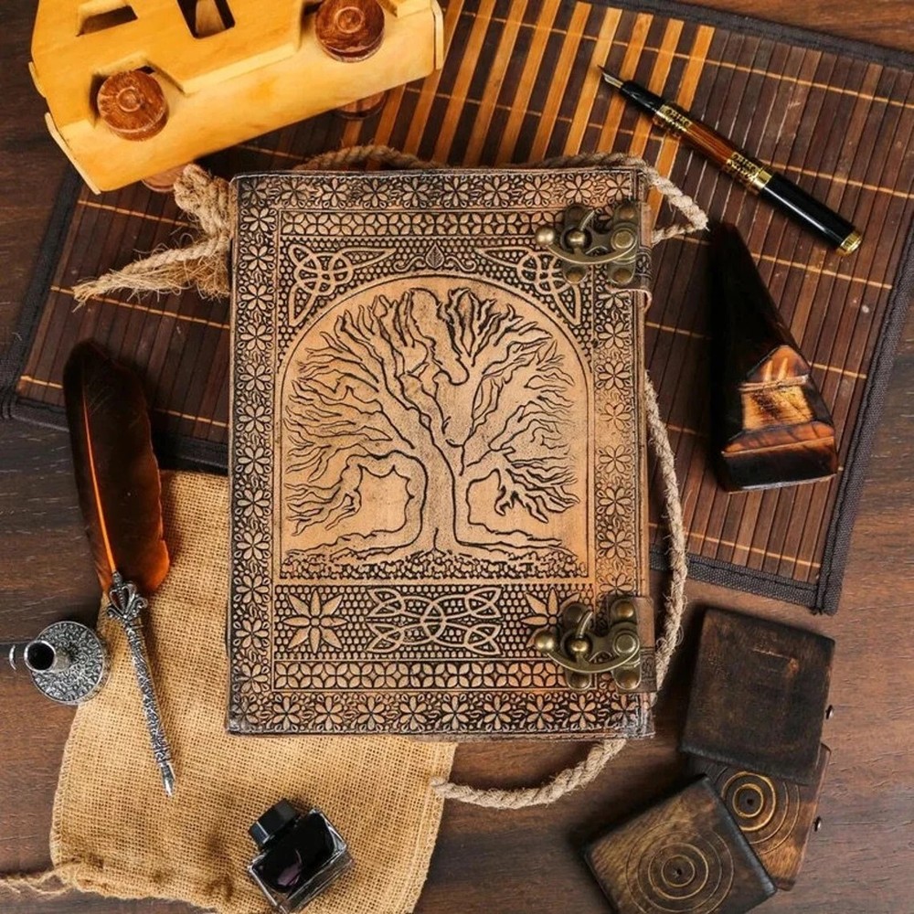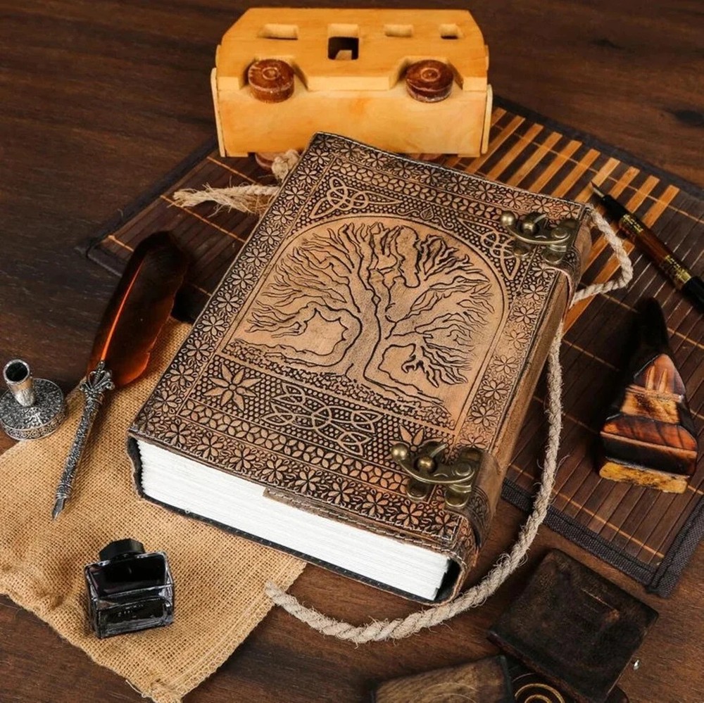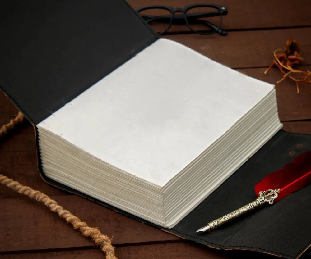 This handcrafted leather journal is a beautifully designed piece, perfect for capturing your thoughts, plans, and ideas. Here are the detailed features: Dimensions and Build Dimensions: 4 (H) x 10 (L) x 7 (W) inches Pages: 600 pages on both sides Leather: Soft, supple, and pliable genuine leather with a natural leather scent Tanning: Naturally tanned with special oil, providing a unique and luxurious feel Paper and Usability Ideal Size: Large 10 X 7 inches, large enough for creative expression Paper Quality: Smooth craft paper that allows the pen to glide effortlessly across the page Recycled Cotton Pages: Perfect for mini notes, with a total of 600 pages to fill Design and Security Locks: Two vintage-style bronze C locks to keep your notebook safe and organized Design: Exquisitely crafted, making it an ideal gift for book lovers or those who appreciate literature This handcrafted leather diary is a perfect blend of functionality and artistry, making it a treasured keepsake for anyone who loves to pen their thoughts, sketch, or keep detailed notes.