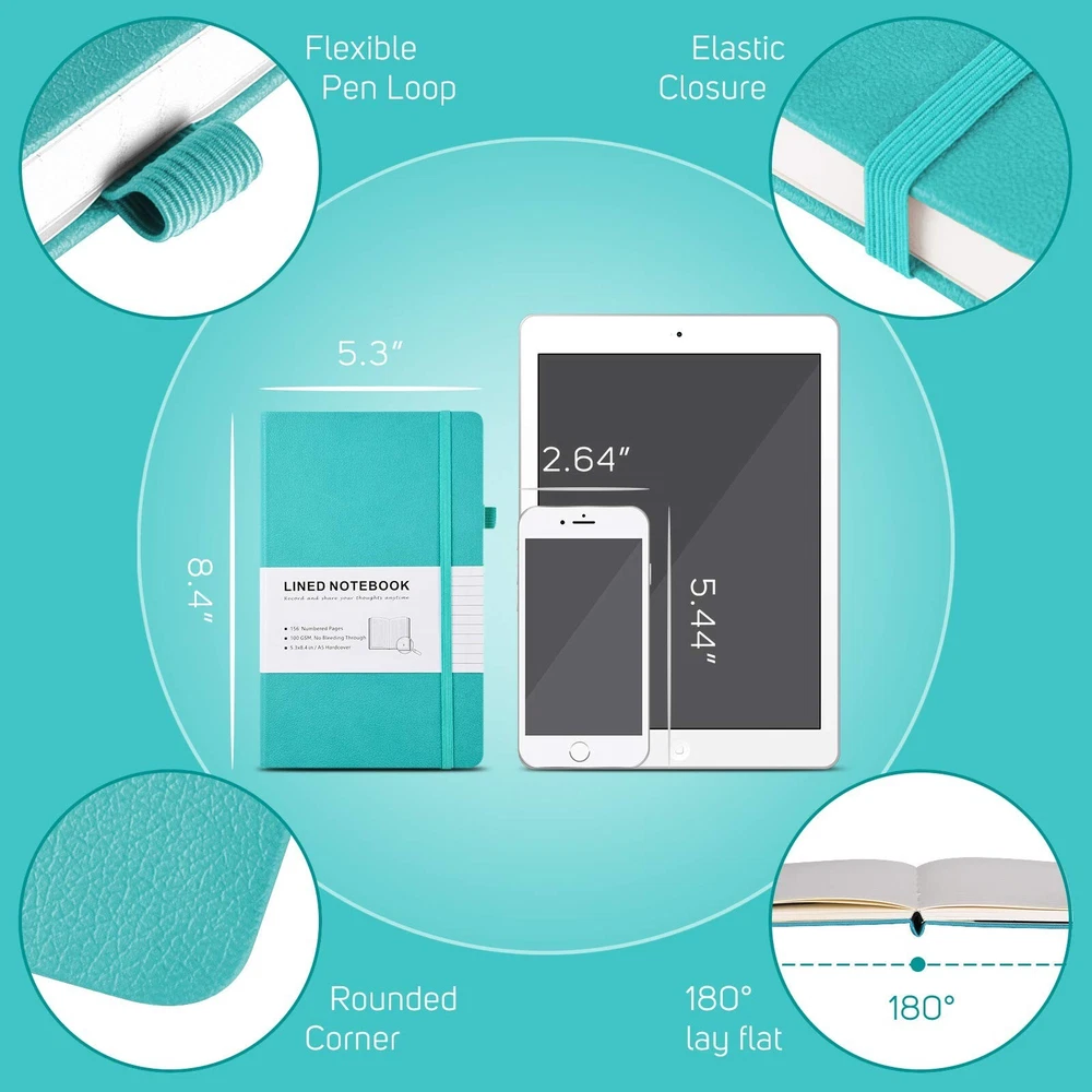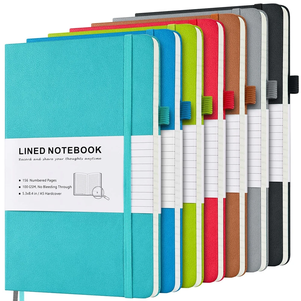7 Pack Lined Journal Notebook, Hardcover PU Leather Notebook for Men Women, 100 GSM Thick Numbered Pages with Index Content, Inner Pockets, Bookmarks, A5 Ruled Writing Journal Bulk (Multicolor) ✓ Free 60 Day Returns ✓ Free Express Shipping Description: Features: Faux Leather Hardback Journal: Premium vegan leather makes durable and sturdy covers to keep your journal safe for years and create comfortable touch in hands. 7 Classic colors leather bound journal for options, perfect for school, office, home and travel. Fountain Pen Paper: No Bleeding through for most ink pen is our paper's rigorous standard. After hundreds of test, we apply upgraded 100 GSM off-white Acid Free Paper, which helps write smoothly without ghosting, smearing and avoid eyes tiredness. Numbered Pages Notebook: 156 Pages (78 Sheets), End to end lined pages come with Table of Contents, page numbers, and 2 different colored ribbon bookmarks to help you organize content and easily find it out. 2 Stickers for the spine and cover of notebook to archive. Handy All-in-one Journal: Medium notebook, 5.3" x 8.4", suitable in bag and handy in hand; 1 Solid expandable back pocket and 1 front pocket for loose leaf paper, bills, receipts; 1 Elastic pen loop for various szies pens; 1 Elastic band to keep notebook closed. BRAND GUARANTEED: MALEDEN is committed to offering a high quality journal for you to have a excellent writing experience. Pack of 7 multi colors journal, Perfect gift for you and your families, friends and colleagues. Please email us if there is any problem or question to 100% satisfactory solved. Product Details: Brand: MALEDEN Color: Multicolor Theme: Book Sheet Size: 5.3 x 8.4 inches Cover Material: Faux Leather Style: Multicolors Ruling Type: Dotted Special Feature: Hard Cover Number of Items: 7 Specific Uses For Product: Office, School, Note Taking, Register, Journal Writing, Checklist, Grocery List, Surveying, Meal Planning See more Manufacturer: MALEDEN Brand: MALEDEN Item Weight: 5.35 pounds Package Dimensions: 13.19 x 11.14 x 3.62 inches Color: Multicolor Cover Material: Faux Leather Number of Items: 7 Size: A5 Ruling: Dotted Sheet Size: 5.3 x 8.4 inches Manufacturer Part Number: P-A5yingke-hengxian-hunse-7 Date First Available: April 15, 2021