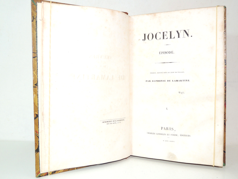 A. De Lamartine. Jocelyn. Journal Found at a Country Priest's. 1836. EO The description of this item has been automatically translated. If you have any questions, please feel free to contact us. A. de Lamartine. Jocelyn. Episode. Journal found at a campaign priest Volume I. 1E - 5th era. Connected flight, 23x15, pretty binding, solid, good general condition, 3222pages. Paris, Gosselin, 1836. Original Edition Ref/163 A. de Lamartine. Jocelyn. Episode. Journal found at a campaign priest Volume I. 1E - 5th era. Connected flight, 23x15, pretty binding, solid, good general condition, 3222pages. Paris, Gosselin, 1836. Original Edition Ref/163 Recommended products Provided by Fashion Journal 1836. 23 Color Plates View item A.F Ozanam. Civilization Christian At All Francs. 1849. Eo View item Remy Of Gourmont. D'A Country Outland Miracle - Faces Of Women 1898. Eo View item Portraits and History of Useful Men (1833-1836). 47 steel engravings. 1836 View item 1836. Pedro Blanchard. Treasure of Children View item Map of Italy drawn by Th. Duvotenay 1836 View item A. Leblond. Treatise On Gynecological Surgery. 1878. EO. 281 Illustrations View item Autographed Shipping Pierre Frondaie. Lost and Found Iris. First Edition View item Caractéristiques spéciales Illustré Auteur Frédéric Soulié Description de la modification Envoi autographe Objet modifié Non Reliure Cuir Langue Français Époque XIXème Sujet Livres illustrés