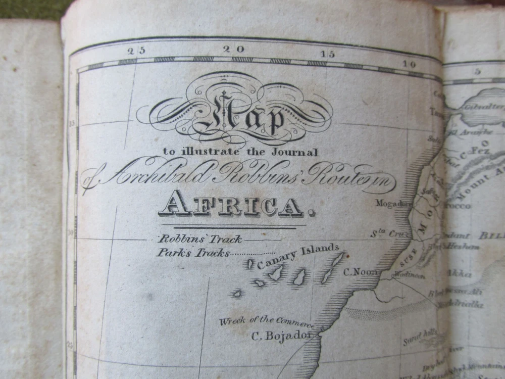 This rare 1821 leather-bound edition of Archibald Robbins' harrowing survival tale is a captivating piece of history. The detailed account of the shipwreck and subsequent desert ordeal makes for gripping reading, enhanced by the original map. The well-preserved 275-page volume shows quality craftsmanship, with the leather binding still in good condition after two centuries. A must-have for collectors of maritime history or early 19th-century exploration narratives, this 13th edition offers an incredible firsthand perspective of survival against impossible odds in Africa. The vivid descriptions of Arab encounters and African geography remain fascinating today.