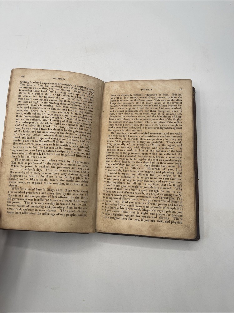 This is a rare and valuable item for collectors of Americana. A Journal Of A Young Man Of Massachusetts By Benjamin Waterhouse is a first edition book published by Rowe And Hooper in 1816. The book is bound in leather and was originally written in English. The book's topic is journalism and it provides a unique insight into the author's perspective. The book was manufactured in the United States and is an original copy. It would make a great addition to any collection. 228 pages interior has light foxing and a few water stains on a few pages / the illustration to the title page has a piece missing / rest of text complete and binding tight