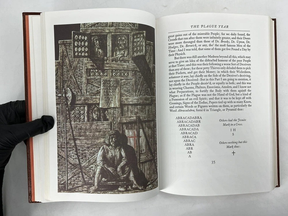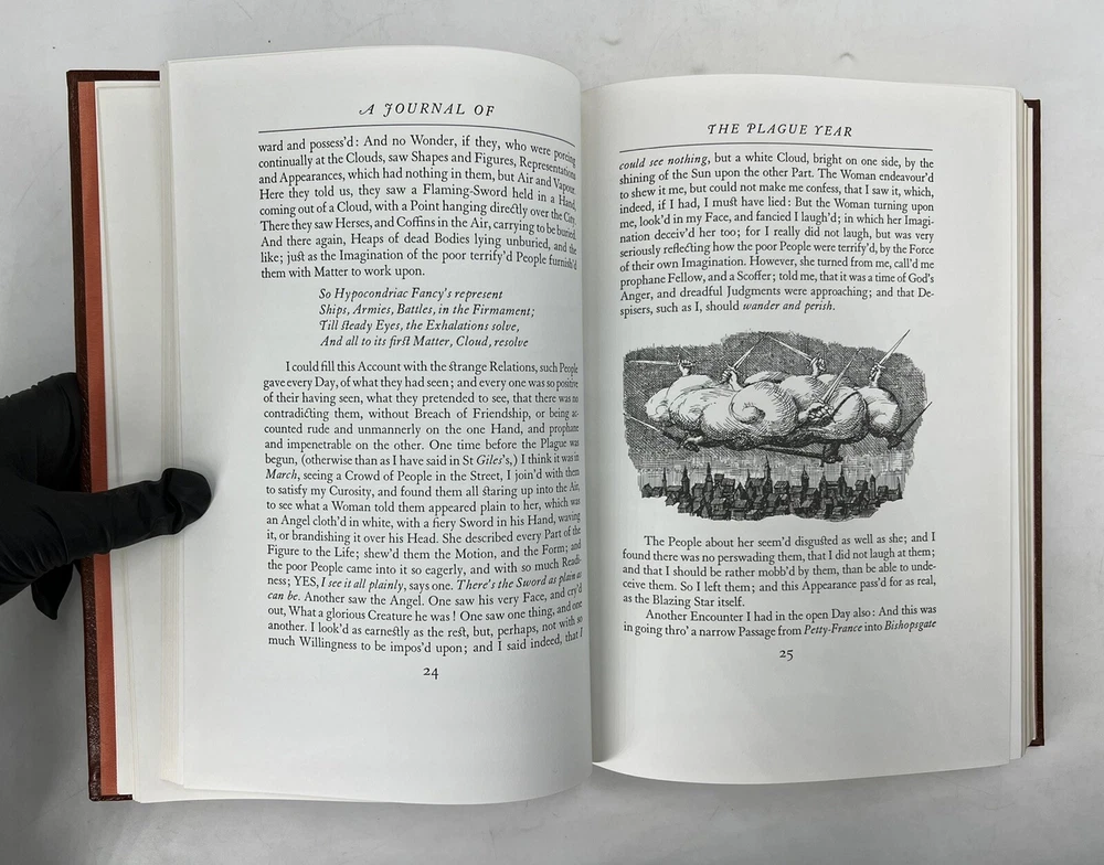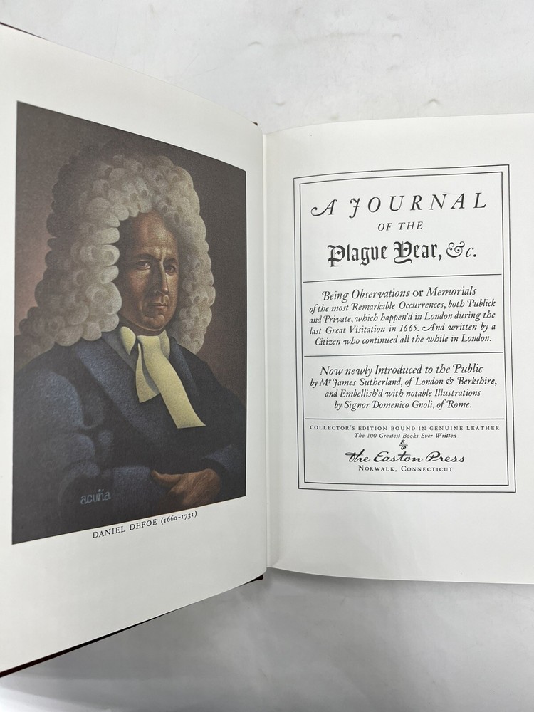 A Journal of The Plague Year 1665 Daniel Dafoe Easton Press Leather Bound HC. Book is in good condition with no writing or highlights Does show minor shelf wear on the corners but in overall good condition. There are white marks on the edges. Please see pictures FREE SHIPPING