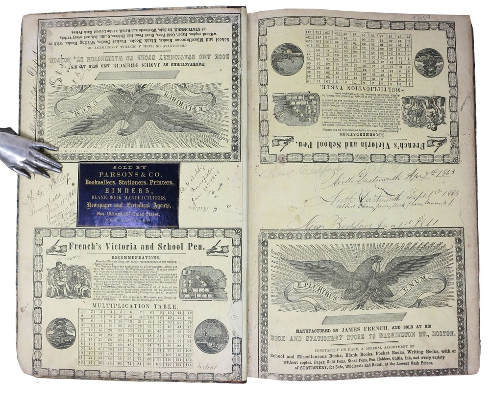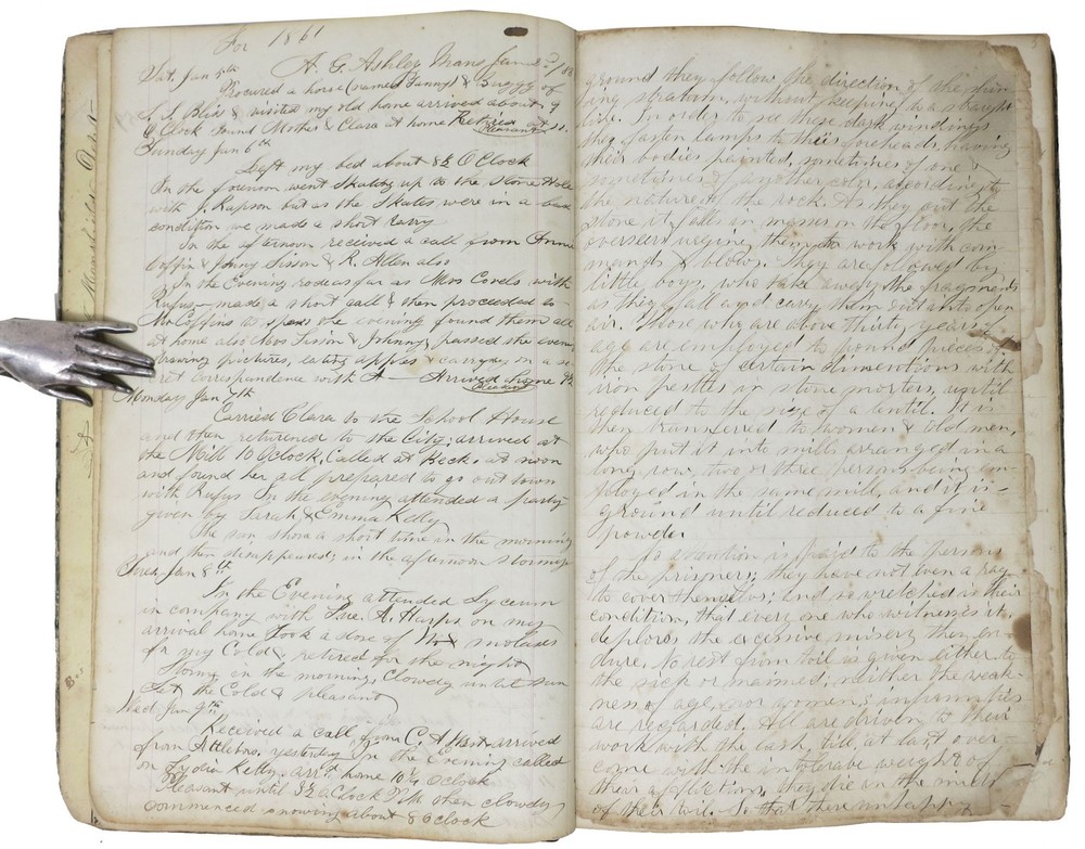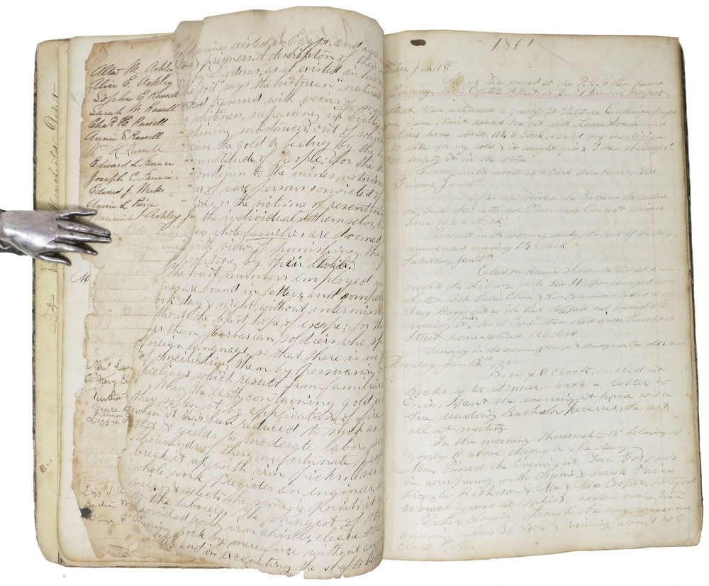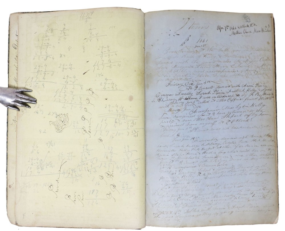 CIVIL WAR ERA JOURNAL Author: Ashley, Allen G. Title: CIVIL WAR ERA JOURNAL Publication: New Bedford, Massachusetts: 1861 - 1875 Description: ~ 100 pp. of mss entries. 12-3/8" x 8". Modern speckled brown leather respining, original green marbled paper boards. Printed yellow pictorial advert eps. Boards well worn. Parsons & Co label to front paste-down. Good. This mid-19th C. manuscript journal/diary belonged to Allen G. Ashley of New Bedford, Massachusetts. Ashley was a miller who worked at the New Bedford grain mill of Warner Denison & Co. Ashley was also a member of the New Bedford Fire Department and worked with horses. In 1861 Allen Ashley purchased a large 8 x 12-1/2" notebook from Parsons & Co. Booksellers on Union Street in New Bedford. Ashley used this notebook as a journal from January 1861 through the Civil War and into the 1870's. He even made some entries in this journal as late as 1896. Ashley enlisted in the Army on September 30, 1861 and left the Army on March 12, 1863. The journal starts in January, 1861 approximately nine months before he enlisted and continues for many years after he leaves the army. At the beginning of the journal is a two-page list of family members, he gives the birth date of each family member, when they were born and when they died. There are also several pages of "Notes" on subjects that he found interesting. Ashley was also a member of the New Bedford Fire Department, on Jan. 2, 1861 he documents in this journal "Fire broke out on Fish Island it started at 5 o'clock p.m. & burned the oil establishment & killed two men, it was caused by a bursting tank..." The first part of the journal is quite detailed. Ashley documents everyone he calls on and all of his social engagements, including the concerts he attended. When the Civil War broke out Ashley started writing on significant war events in the left margin of some of the pages. The first marginal note was " April 15th Fort Sumter Surrendered." On the following page he makes another marginal note "April 19th Mass. Troops Marched in Baltimore." On May 24th he writes "Col. Ellsworth Shot at Alexandria." On Monday September 30th Ashley writes " Bussage and myself enlisted in Reeds Rifle Rangers." It appears Bussage was a friend of Ashley and they joined the Army together. Apparently they enlisted in the 3rd Massachusetts Cavalry. The next four pages of the Journal are a series of more than one hundred and fifty, one and two-line entries starting from December 12, 1861 through March, 1863. According to records Allen G. Ashley became a member of the 3rd Massachusetts Cavalry in 1861. Sample entries include: "Oct. 16th arrived at Fort Monroe, at 11 1/2 O'clock a.m.; Feb. 4th Sailed from Fort Monroe at 11 o'clock; Feb 12, arrived Ship Island; Feb 26, landed 126 horses; March 8th Expedition to Biloxi lost one man one man wounded; April 16th sailed from Ship Island; May 2nd Landed in New Orleans marched past the Customs House and at last took lodgings in store house; July 4th Examined again for discharge with 4 others; Aug. 8th Funeral for General William Russell, acting orderly; Aug. 29th Escorted General Butler from ....... horse fell; Sept 6th took prisoners in swamp back of ...... ; Sept 18th taken sick; Nov 30th discharged from hospital; Jan 29th examined for discharge." The above is a small representative example of the more than one hundred and fifty entries Ashley made in this journal during his eighteen month stint in the Army. On march 11th Allen Ashley arrived in Fall River, Massachusetts. Allen Ashley went back to work with horses and in May of 1864 was driving the Hatch & Whiting Express stage between Boston and New Bedford. On November 30th Ashley "left the Express business." Between December 4th 1864 and July 15, 1865 Allen Ashley appears to have made two voyages to Matamoros Mexico. During the Civil war Matamoros (just across the Rio Grande from Brownsville Texas) was a great financial and commercial center, feeding, clothing and arming the rebellion. The confederate government was greatly sustained by the resources of this port. There are several pages of entries documenting the trips, though the reasons therefore remain speculative. The rest of the journal documents some of the more important things that happened in Ashley's life including getting married, having a child and some of the other places that he has worked. An invaluable primary source that documents life during the period. Seller ID: 47057 Subject: Americana Tavistock Books, ABAA Reno, NV Established in 1989, Tavistock Books has recently moved from its former long-time Alameda CA location to Reno NV. We are a general antiquarian business, with material ranging from Aviation to Zoology, from the 16th C to the 21st. We have specialties in Dickens, History of Nursing, Children's Serial Fiction & Western Americana. Visits may be arranged by appointment, generally 10 am to 3 pm, Pacific Time. Guarantee We guarantee everything we sell and any item may be returned for any reason within 30 days of receipt. If the return is due to an error on our part, we will reimburse you the cost of your return. Please do exercise the same care in packaging, as we do in shipping all items purchased from us. We are members of the Antiquarian Booksellers' Association of America (ABAA), and the International Online Booksellers Association (IOBA). Shipping We are happy to ship to buyers outside of the United States. Please contact us for an exact shipping quote. All books shipped to US destinations are usually sent US Post Office Media Mail, with despatch usually within 72 hours of payment receipt. Delivery typically takes a week, but may be longer, especially during the holidays. Faster shipping is available, please contact us for a price quote. We will combine shipping on items purchased at the same time. We prefer PayPal. Feedback We leave feedback for buyers once they have posted feedback for us. If you are unhappy with any aspect of a transaction w