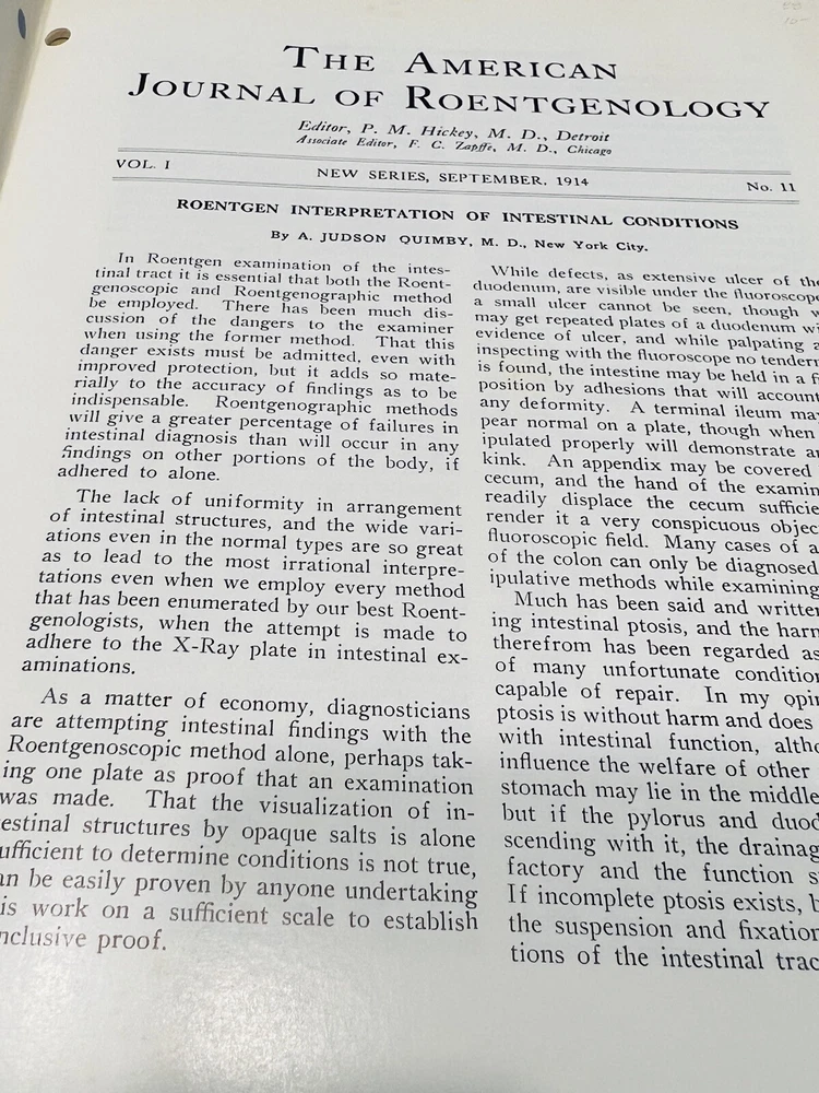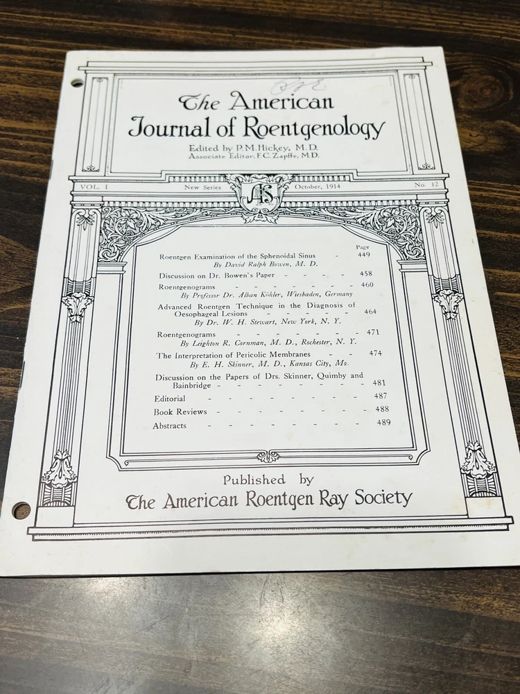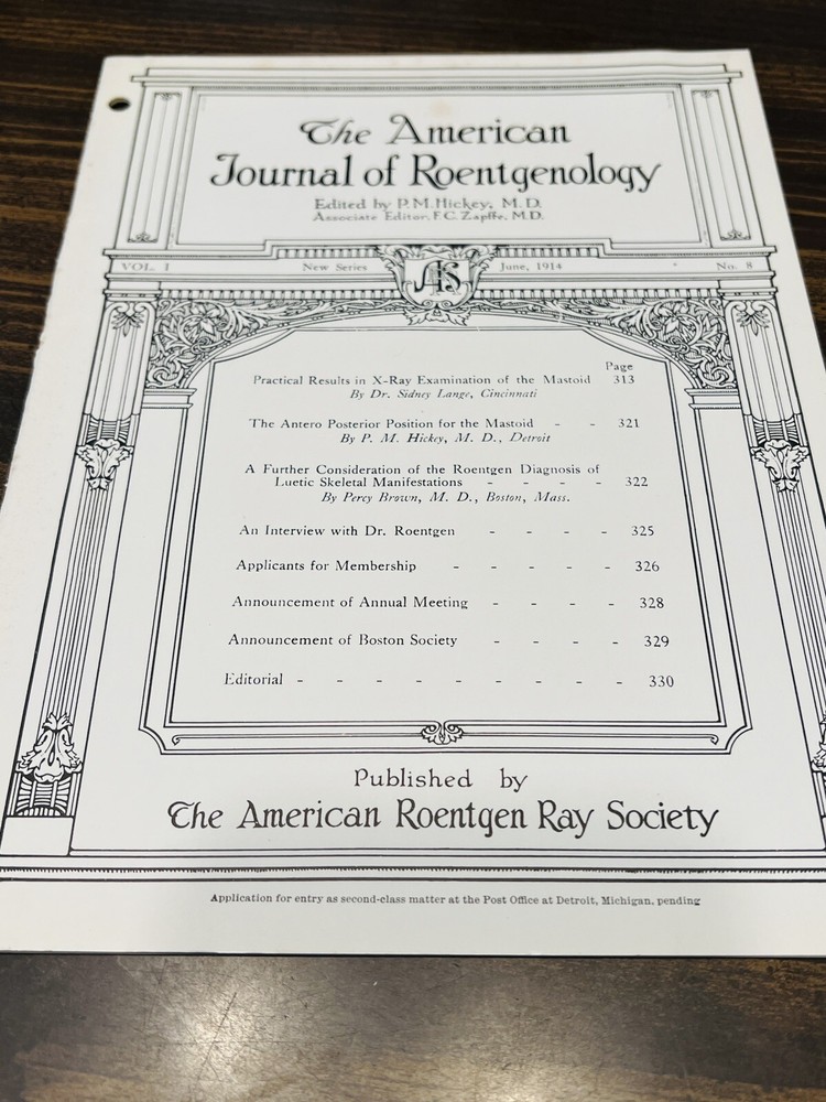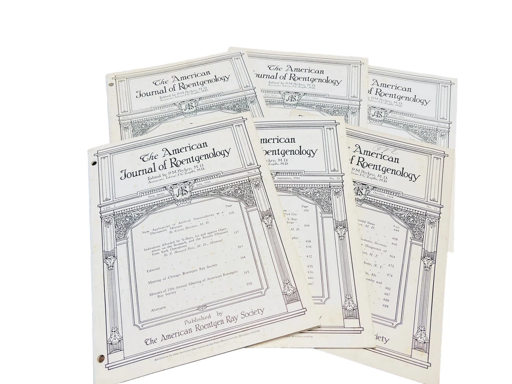 American Journal Of Roentgenology 6 Issues Vol.1, No.1, 1913, #6, 8, 9, 11, 12. Original antique issues. Some foxing on covers. Please see photos.