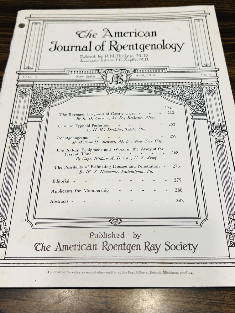 American Journal Of Roentgenology 6 Issues Vol.1, No.1, 1913, #6, 8, 9, 11, 12. Original antique issues. Some foxing on covers. Please see photos....