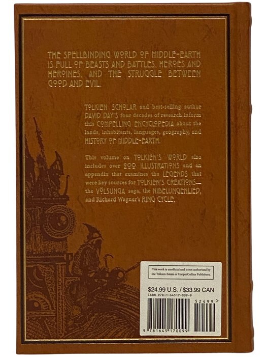 Yesterday's Muse, Inc. presents ... An Encyclopedia of Tolkien: The History and Mythology That Inspired Tolkien's World ISBN: 1645170098 Author: Tolkien, J.R.R.; Day, David Publisher: Canterbury Classics Release Date: 2019 Seller Category: -- Qty Available: 1 Condition: New Sku: 2342696 Notes: New. Reprint. An exceptional copy. 2019 Full-Leather. 544 pp. A comprehensive, illustrated guide to the history, lands, and inhabitants of Middle-earth. The fantasy world of J. R. R. Tolkien’s Middle-earth contains a rich assortment of people, cities, and creatures—as well as a deep, intertwined history that spans thousands of years. In this beautifully illustrated, leather-bound volume, best-selling author and Tolkien scholar David Day presents four decades of research and writing on the lands and inhabitants Middle-earth. Sections of this A-to-Z dictionary are devoted to discussion of the battles, history, beasts, and heroes of Tolkien’s stories, and are accompanied by black-and-white illustrations. This comprehensive volume on Tolkien’s world also includes an appendix of three primary legends that served as sources for Tolkien’s creations—the Volsunga saga, the Nibelungenlied, and Richard Wagner’s Ring Cycle—and more than 200 black-and-white illustrations. Don't forget to check out other great deals in our eBay Store!!