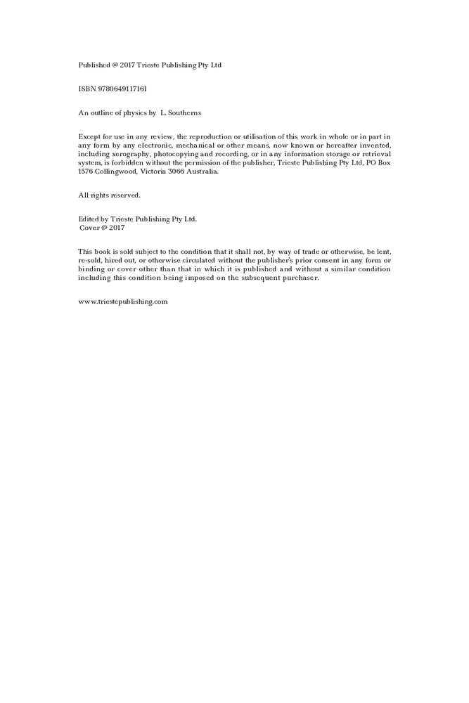 About the Book Books about Physics discuss the science that is concerned with the universe, energy and matter, and how they behave over time and space. Titles include: Fundamental measurements, properties of matter and optics, An Introduction to Electrodynamics from the Standpoint of the Electron Theory, Die Lagerung Der Atome im Raume, Die Grundlagen der Einsteinschen Gravitationstheorie, mit einem Vorwort von Albert Einstein, Einstein, the searcher: his work explained from dialogues with Einstein, Einstein's Theory of Relativity, Relativity: The Special and General Theory, and The Elements of Experimental Physics, Acoustics, Light and Heat, Magnetism and Electricity. Also in this Book Books about Science discusses the knowledge building activities that examine natural / empirical phenomena including in such fields as biology, chemistry, zoology, astronomy, and mathematics. Titles include: Elements of the Differential and Integral Calculus, English Men of Science: Their Nature and Nurture, Rock-Forming Minerals, The direction of human evolution, The Essence of Astronomy: Things Every One Should Know about the Sun, Moon and Stars, The Preparation and Mounting of Microscopic Objects, The Gospel According to Darwin, A Manual of Blowpipe-Analysis, and Determinative Mineralogy, and The Stars and the Earth: Or, Thoughts Upon Space, Time, and Eternity. And in this Book Books on Experiments and Projects in Science describe the scientific method of hypothesis construction, testing and validation / refutation that is the backbone of progress in scientific research. Titles include: Discourse on the Method of Rightly Conducting the Reason, and Seeking the Truth in the Sciences, How to Use the Microscope, Materialisations-Experimente mit M. Franek-Kluski, Pioneers of progress. Men of science. Joseph Priestley, Signalling Across Space Without Wires. Being a Description of the Work of Hertz & His Successors, The advance of science, and perfectibility of its professors, The Teaching of Science, and Polyphase Electric Currents and Alternate-Current Motors. About us Trieste Publishing’s aim is to provide readers with the highest quality reproductions of fiction and non-fiction literature that has stood the test of time. Our titles are produced from scans of the original books and as a result may sometimes have imperfections. To ensure a high-quality product we have: thoroughly reviewed every page of all the books in the catalog repaired some of the text in some cases, and rejected titles that are not of the highest quality. If You can't find the book You're looking for, please write to us. We will look for it in our catalog and find the best price for You in our eBay store. Come home to the books that made a difference! Thank you for your interest in our books!