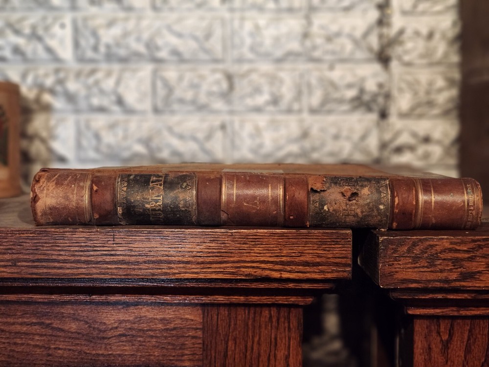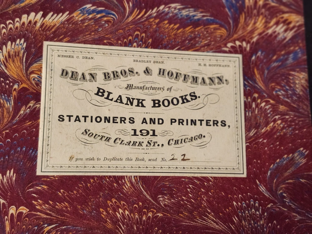 Amazing piece of history with detailed entries of various categories, from Chicago 1874 and 1875. Book is not full, entries fill 110 pages or so. Rest of book is blank. Cover is worn and fragile with age, part of binding is loose on the outside. Pages are all intact. 1-1104