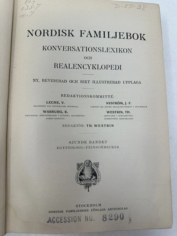 Antique 1907 NORDISK FAMILJEBOK Encyclopedia Vol.7 Owl Edition. Shipped with USPS Media Mail....