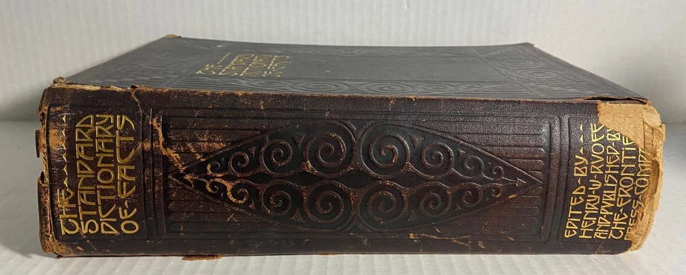 Antique 1913 Book STANDARD DICTIONARY OF FACTS Leather Frontier Press Vintage G8 In Acceptable Condition, some flaws, writing, and wear. binding has wear from shelf and age, see pics Please see all ph...