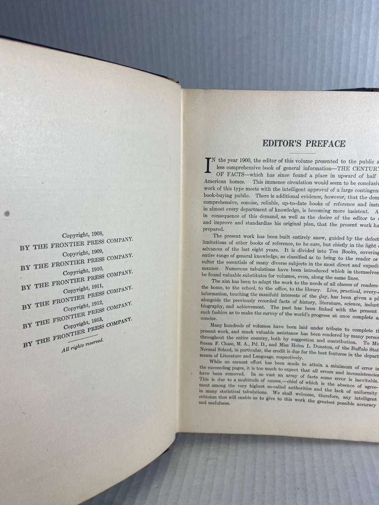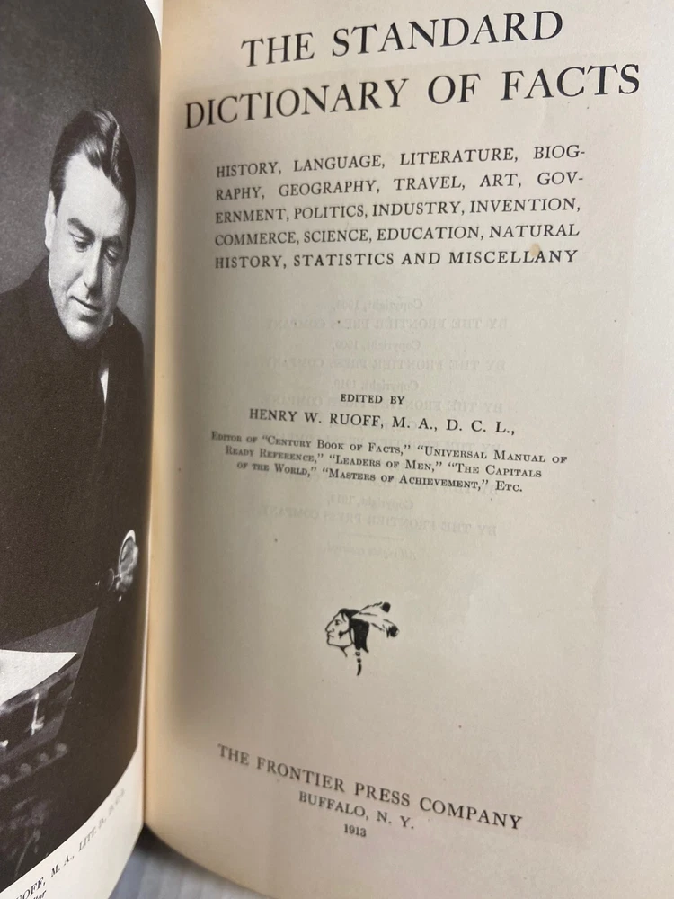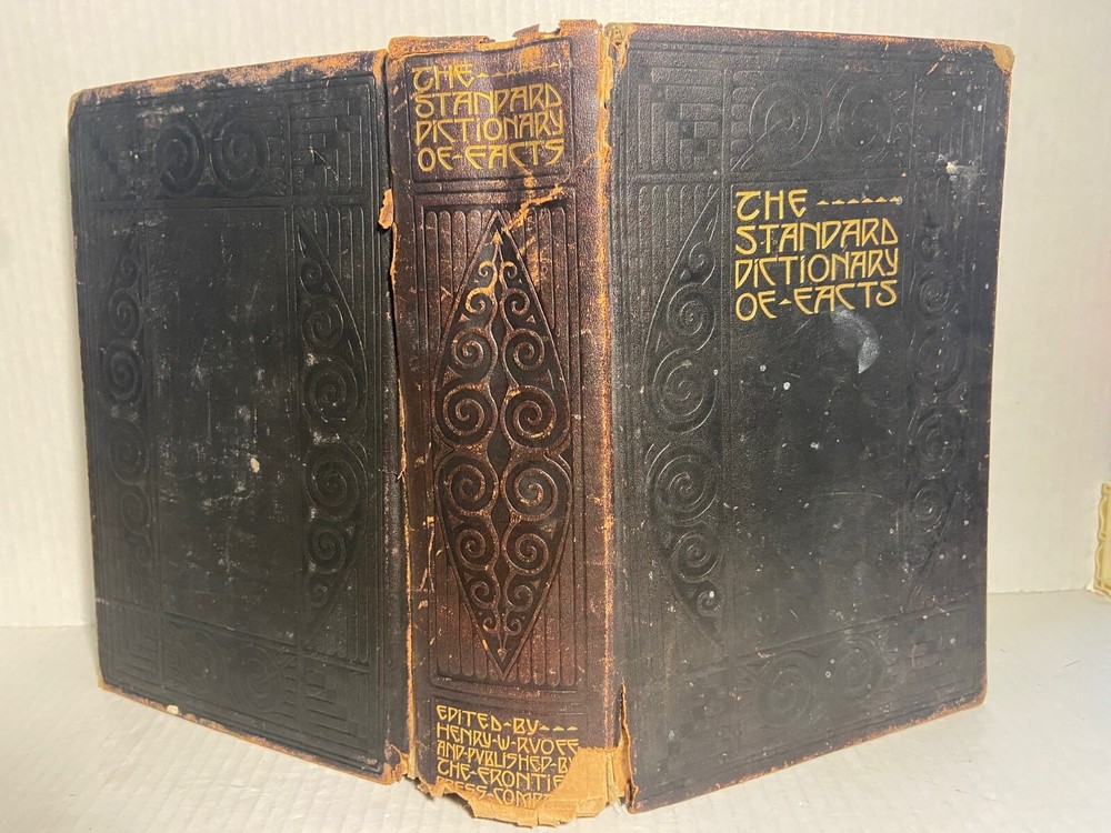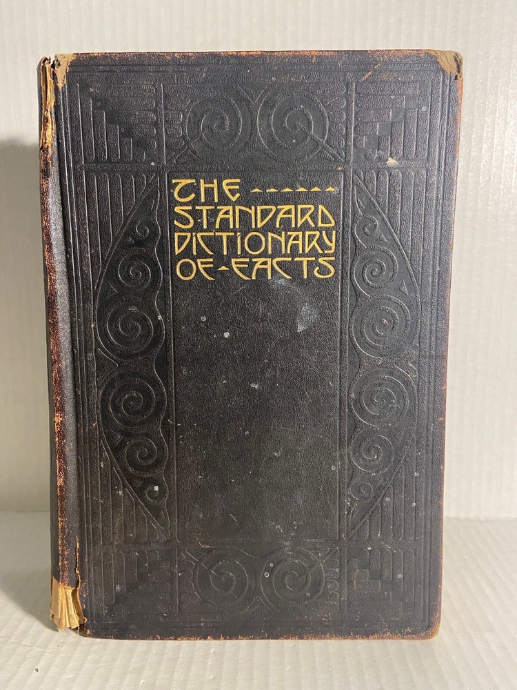 Antique 1913 Book STANDARD DICTIONARY OF FACTS Leather Frontier Press Vintage G8 In Acceptable Condition, some flaws, writing, and wear. binding has wear from shelf and age, see pics Please see all photos and ask any questions