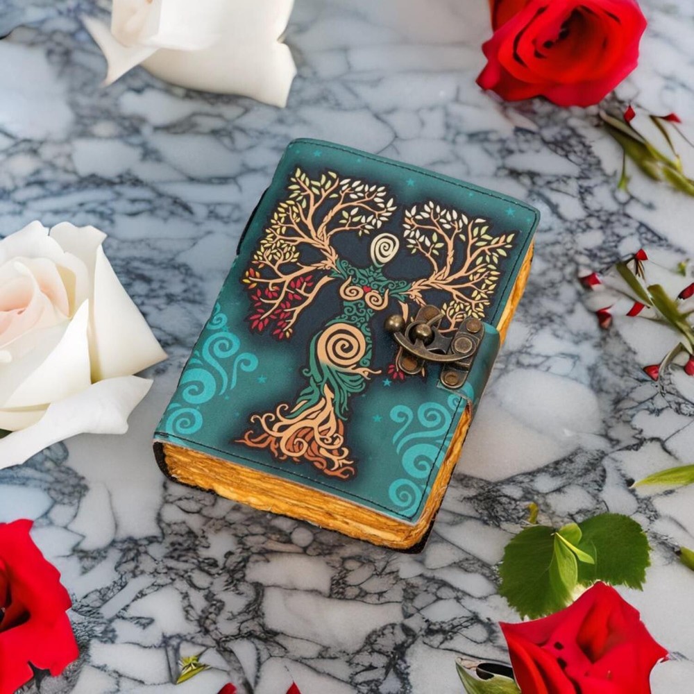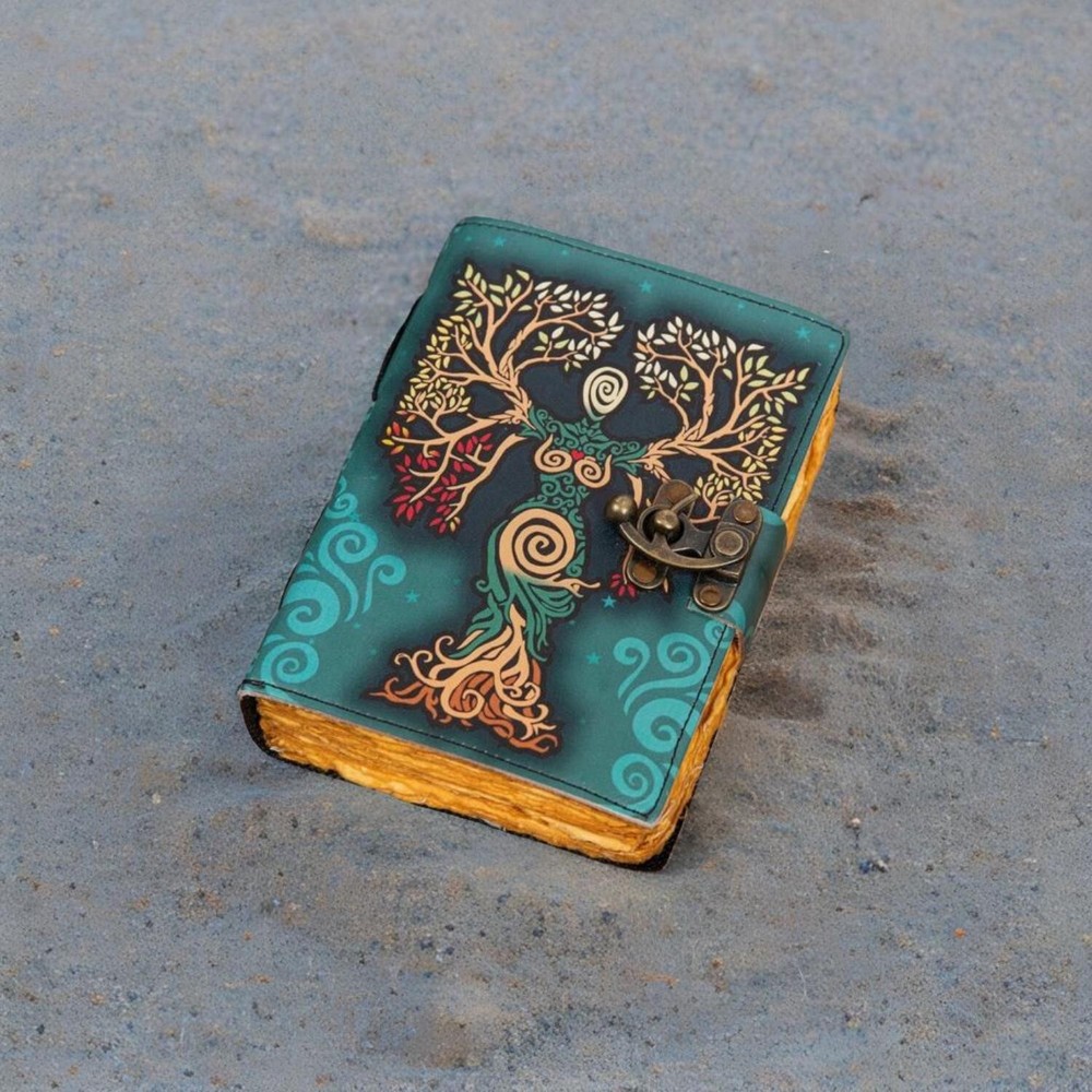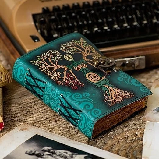 Blank Spell Book of Shadows Journal with Lock Clasp Antique Handmade Deckle Edge Vintage Paper Leather Bound Journal for Women and Men |Travel Notebook for Writing Color Multi Theme Book Pages 200 Pages Cover Material Leather Style Vintage Ruling Type Plain Special Feature Lock Product Dimensions 7"L x 5"W x 1.2"Th About this item Soft & supple designer brown top grain leather with a real leather scent. Blank spell book of shadows is made of the finest aged leather, it is a special keeper of your dreams, designs & thoughts. This spell book contains non-bleeding eco-friendly cotton-made 200 unlined pages (counting both sides). Handcrafted papers manufactured using cotton Bio-mass, which are also Acid-free. Any kind of ink pen and pencil can be used on this paper. Blank paper design so that you can draw mind maps, sketch ideas or write notes freely on the page. Perfectly sized (Length - 5", Width - 1", Height - 7") for multi-purpose use, This is easy for handwriting and carrying in your bag and perfect to use as a sketchbook, health journal, and poetry journal. It is an ideal journal which records your daily thoughts and life lists. Vintage journal is also good for designing, doodling, or calligraphy of your choice. Multicolored Mother of earth: - This journal is printed with special design called Mother of earth which helps to encourage self-awareness, allows self-expression, and reveals inner truth within yourself. Best gift for your companion:- Vintage leather journal is like a trusted friend. You can use it to solve queries, get inventive, or record valuable memories for them to last forever or you can just use it as a gift for your wife, son, or a daughter or for some enthusiastic writer in your family. Even for looking for a miraculous spell book or a D&D gamer looking for his Quest book.