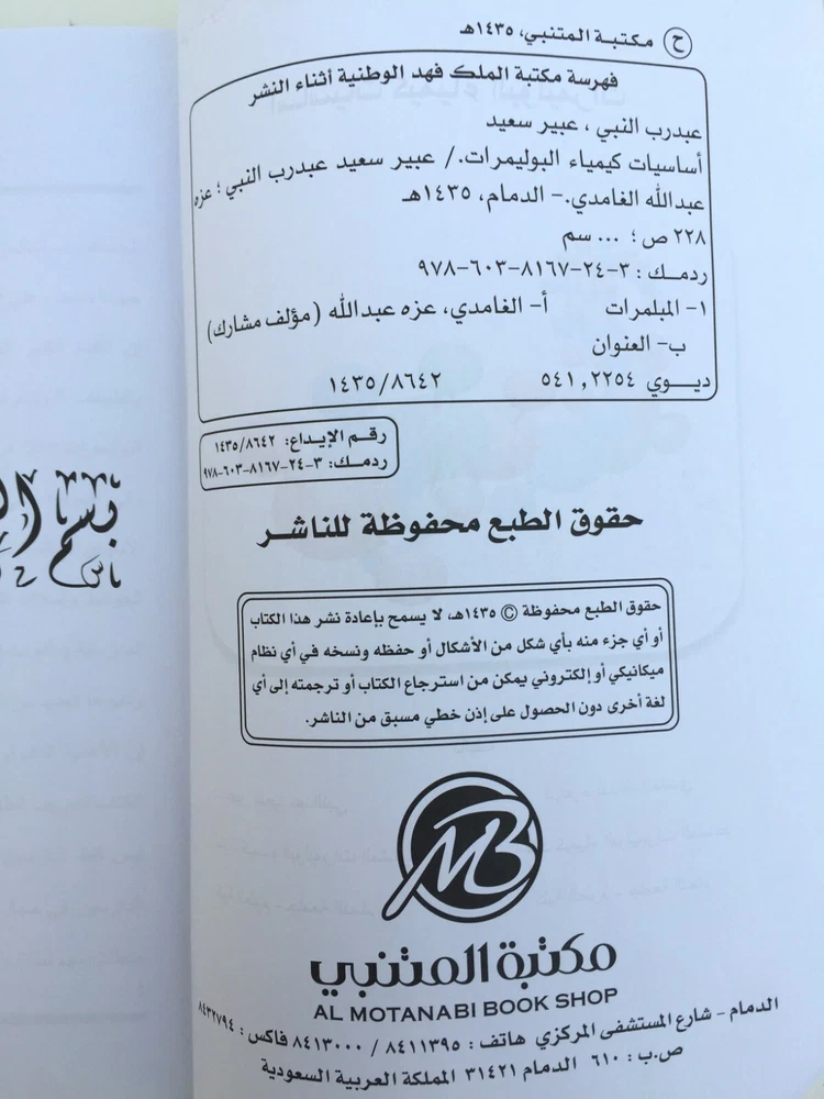 Dear Buyers, We are pleased to provide you with a Book Arabic book Fundamentals of Polymer Paperback Students College 2014 Rare Science Dear Buyers, I am offering a Wonderful piece from my ocean of Book collections Attention dear buyers: This is a limited quantity used offer Not New. Before buying, please be sure if you like it. Condition : Same as photos Good Some Highlighting and Underlining As appears in the photos. If you find yourself attracted to it. I highly recommend buying it now. Details: Paperback Publisher: ALMOTANABI BOOK SHOP (2014) Arabic Edition (2014) Language: Arabic ISBN-10: 6038167243 ISBN-13: 978-6038167243 Pages: 228 Weight: 415 grams (14.6 Oz) Subject: Chemistry Author: Dr. Abeer Abdulnabi and Dr. Eza't Al-Ghamdi Please review all photos closely, since they are large part of my item description Shipping I do ship worldwide by Registered mail with tracking number, except for the countries of : Iraq, Israel, Qatar, Yemen, Argentina, Brazil, Afghanistan, Belarus, Bosnia and Herzegovina, Germany, Central African Republic, Congo, Democratic Republic of the, Eritrea, Guinea, Guinea-Bissau, Libya, Somalia Shipping time takes up to 21 business days All additional payments as tax are the buyers responsibilities I ship only to the approved address that registered in PayPal Handling Time to the Post Office Only 3 Business Day Return Policy: I check myself each product . In case , if you are not satisfied with the product Please contact me and I will do my best to make you satisfied In any case you have 100% Guarantee and refund I accept within 30 Days, In its Original condition as received. Buyer pay for shipping and all additional payments such as tax. Payment: Currently I accept only Ebay payment method please. My customers are of a big importance to me and their satisfaction is of a high consideration. In case you have any problem or question, Please feel free to contact me and I will be more than happy to serve you with a big Smile. Feedback: I give Immediate positive feedback for buyers as soon as payment is received for the purchase. In case of any problem, please feel free to contact me before leaving a feedback so I can do my best to resolve any issue and gain your satisfaction. Thank you for shopping Track Page Views With Auctiva's FREE Counter