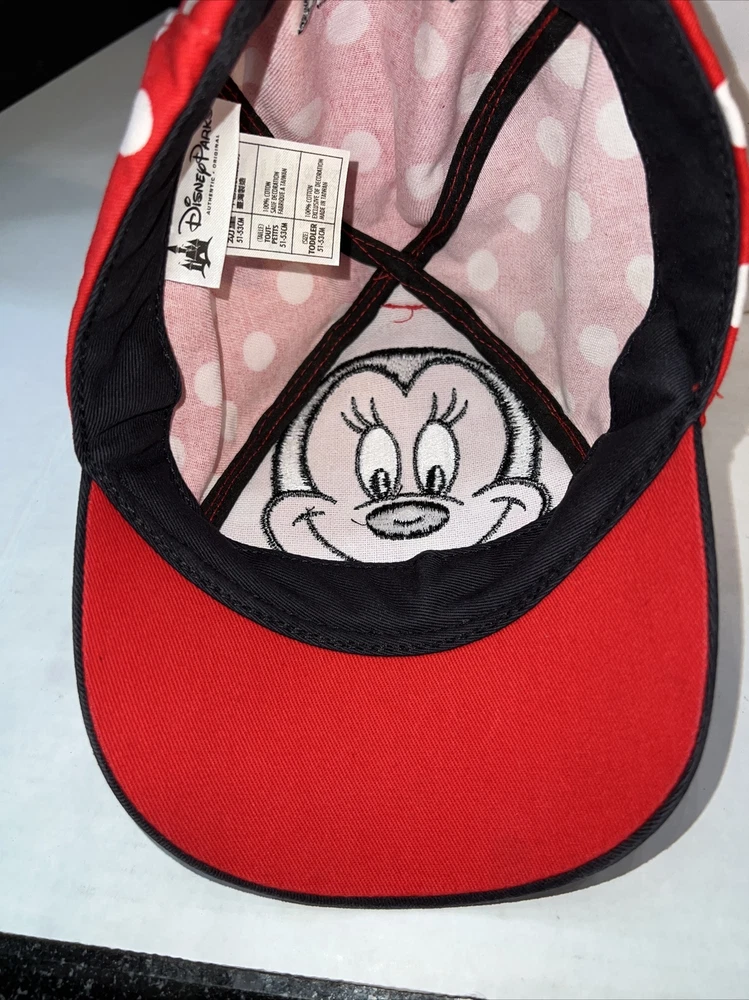 This adorable baseball cap is a must-have for any young Disney fan. It features a colorful Minnie Mouse design and is made to fit toddlers with a head size of 51-53cm. The hat is an authentic product from Walt Disney World and is perfect for any little girl who loves Minnie Mouse & Disney. In PRISTINE condition with no blemishes HB#3