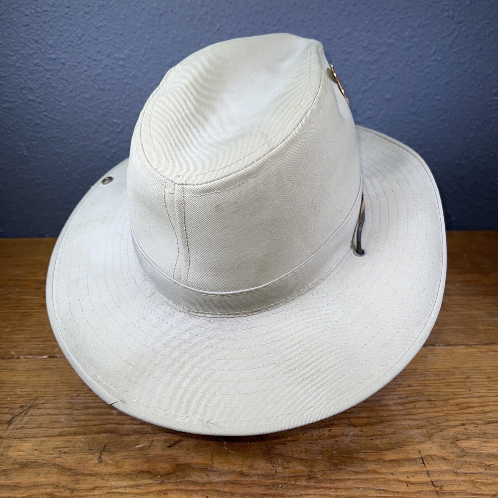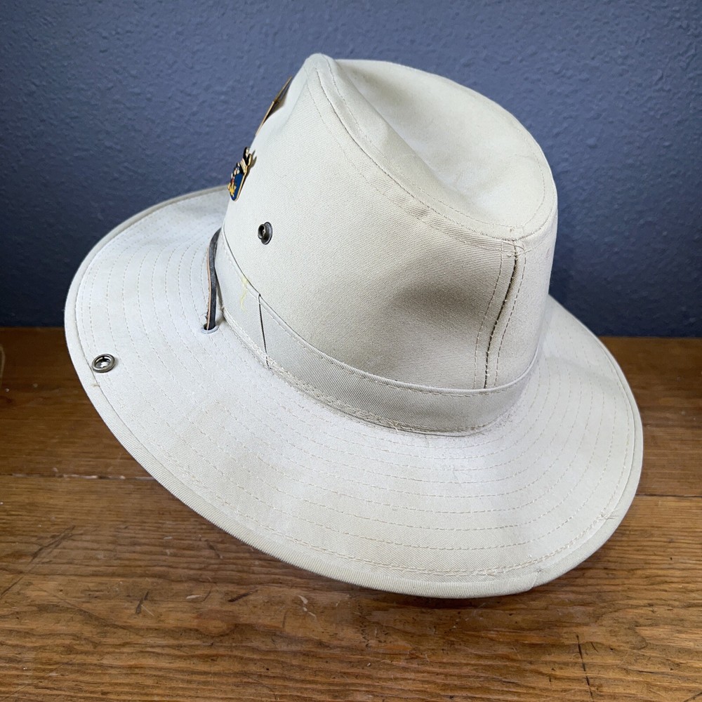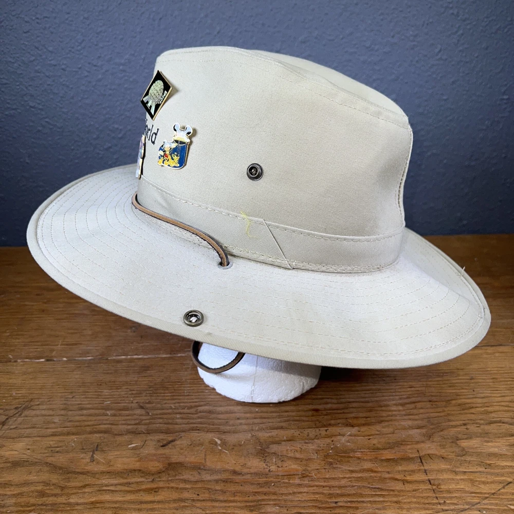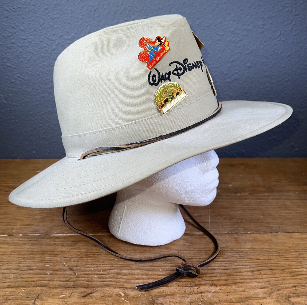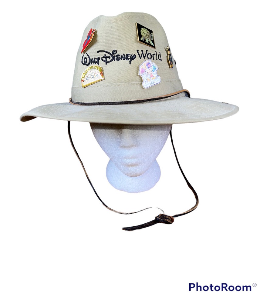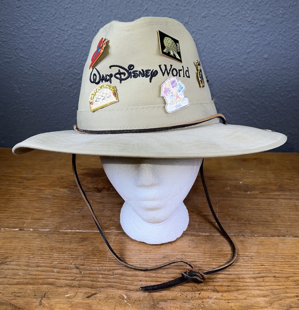 Authentic Walt Disney World Safari Hat Mickey Mouse W/ Pins. Some stains. Hard canvas.