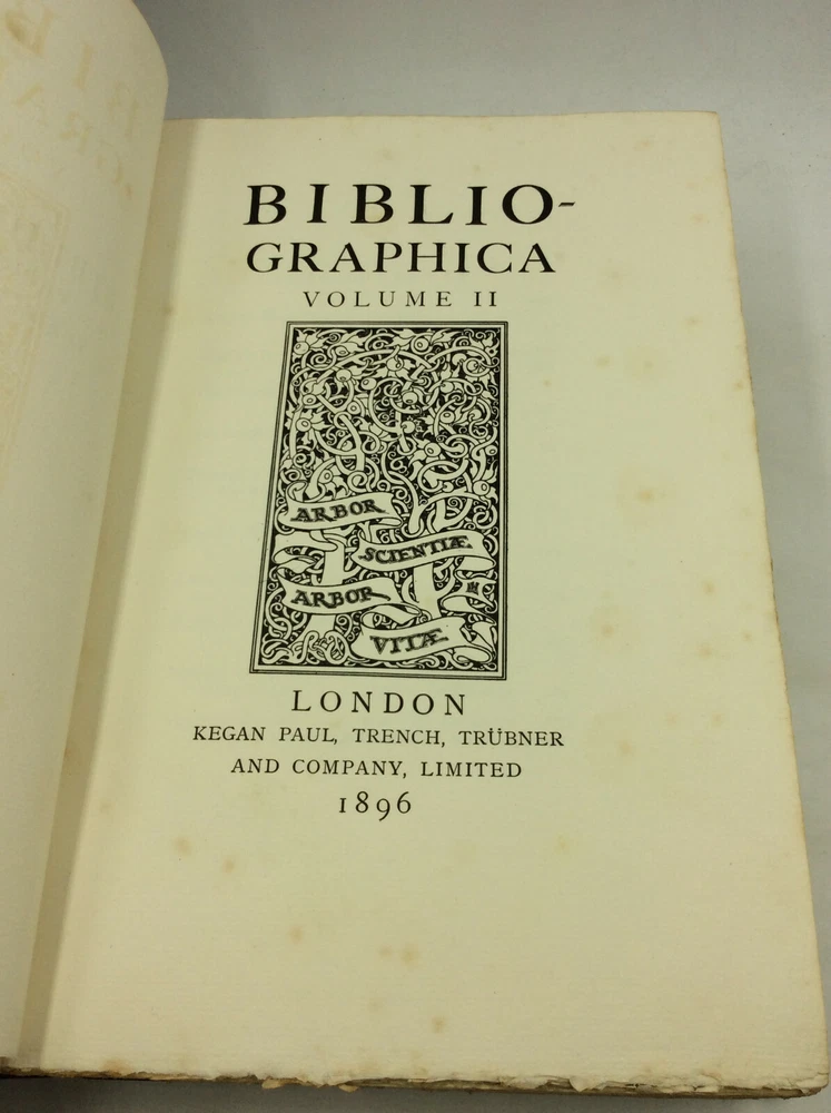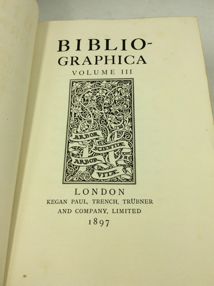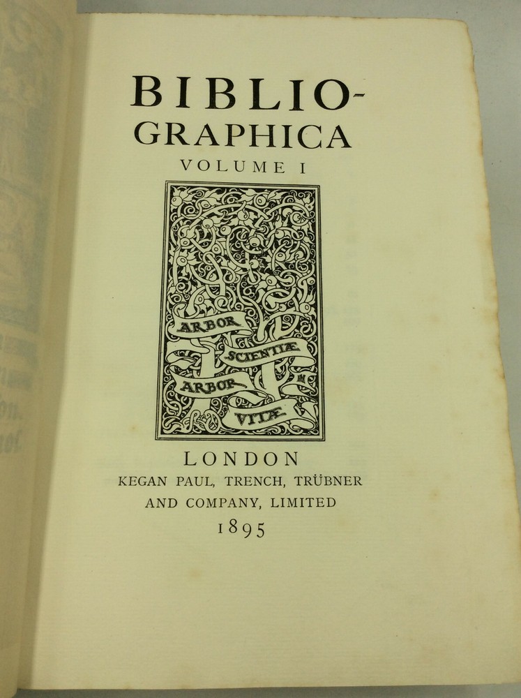 BIBLIOGRAPHICA: VOLS. I-III [COMPLETE] Description: London: Kegan Paul, Trench, Trubner and Company, Limited, 1895. Half Leather. Half leather over brown cloth boards. Marbled paper boards. Light shelf wear. Catalog entry glued onto front endpaper. Light foxing throughout. Otherwise a clean, tight set of hardcover books in good condition. Complete 12 part, 3 volume series. Illuminated frontispiece; illustrations and engravings. Classic journal on rare books and the book arts, including book binding, illustrations, and much more. Complete sets of this work are scarce. This book is offered by Kubik Fine Books Ltd. Established in 1985, our store is in Dayton, Ohio, and specializes in rare/antique books of all types, with a special emphasis on history and theology. All items are guaranteed to be as described and can be returned for a full refund. Autograph material is guaranteed in perpetuity to be authentic. ORDER ADDITIONAL BOOKS AND SAVE! We will combine shipping on multi-book purchases. For shipments within the USA, shipping is $2.00 per book for each additional one purchased. Orders must be paid for at the same time. A FEW WORDS ON SHIPPING: Our shipping charges may be higher than other sellers. That's because we have a dedicated shipping employee and take care to make sure your orders are well-protected. Every item is wrapped in bubble-wrap; in addition, every order which sells for over $10 is shipped in a sturdy cardboard box with cushioning materials. Over 95% of our orders are shipped within one business day of when we receive payment. If you buy it tonight, it's en route tomorrow!