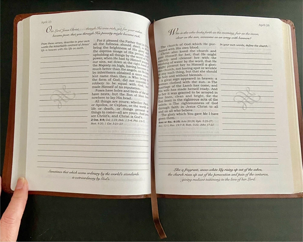 I was so happy to see this Bible arrive in perfect condition, just like in the advertisement. I was also so suprised to see it so carefully wrapped up just like a Christmas gift. On time and nicely packaged. Thank you so much!!!