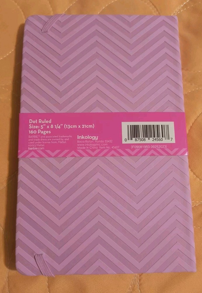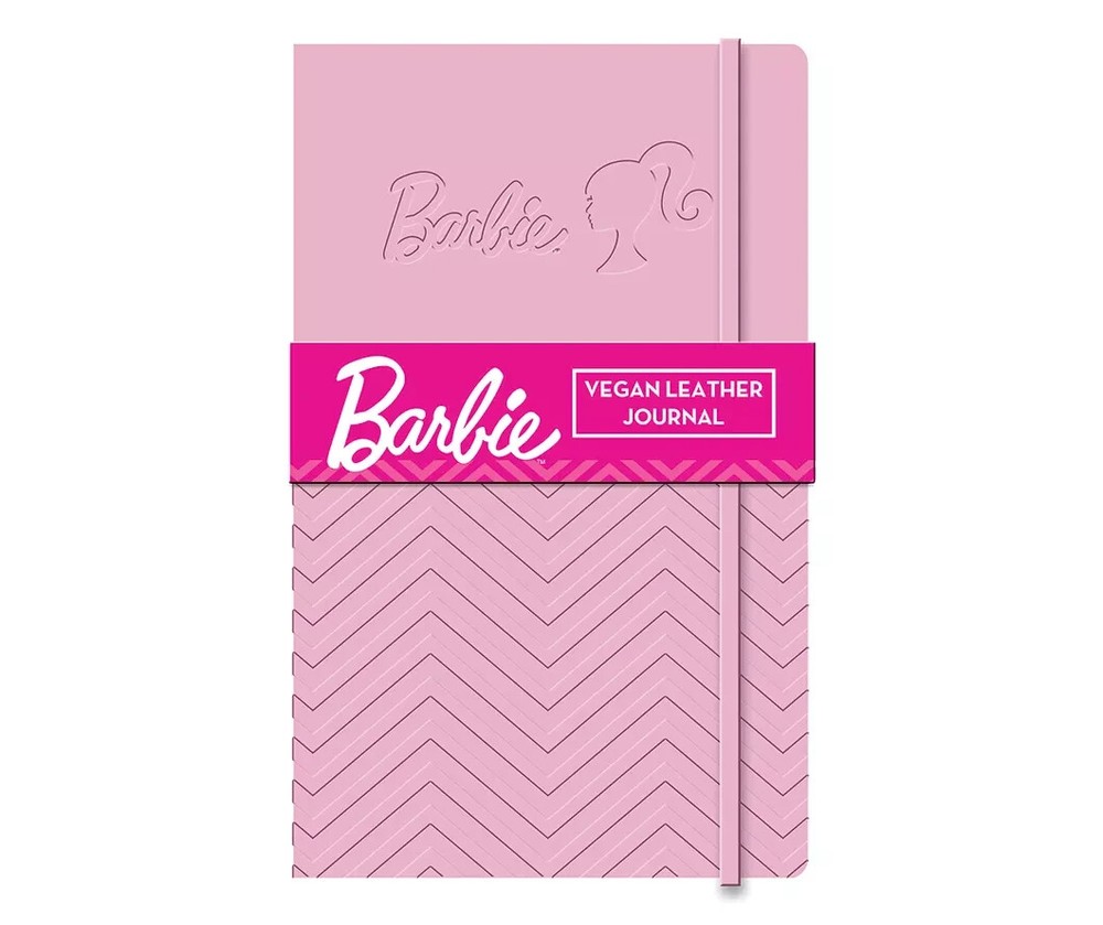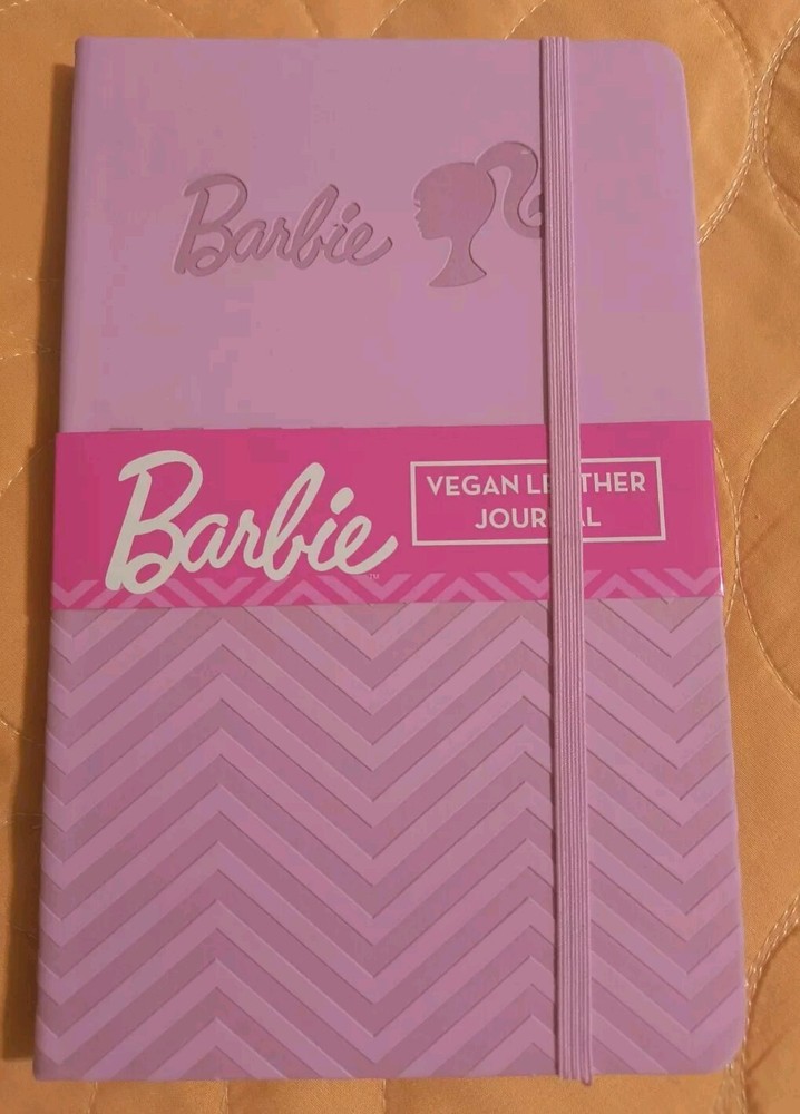 Barbie Pink Vegan Leather Journal 160 Pages with strap closure NEW! Free Shipping! Specifications: Product dimensions: 8.25"L x 5.0"W x 0.75"H. Material: Leather and Paper. Features: Grid ruled journal with securing strap. Pink vegan leather with "Barbie" logo and chevron design. 160 pages. Perfect writing tool for students, teachers, writers and more. For ages 3 years and up. Great for the Barbie Fans!