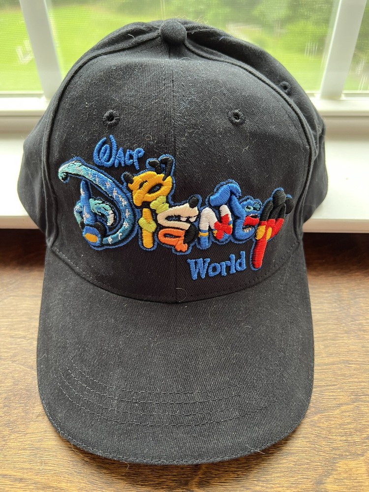 BASEBALL HAT DESCRIPTION : MADE BY : Disney SIZE : Adult - adjustable COLOR : Black with Blue and multi color stitching DESCRIPTION : Baseball Hat - Walt Disney World MATERIAL : 100% Cotton CONDITION : Excellent used condition! I don't believe it was ever worn (bought at Disney World for a souvenir) PAYMENT : Payment is due within 3 days of the end of the auction. SHIPPING : Shipping is via US Post Office ONLY. RETURN POLICY : I list items to the best of my ability and try to describe each item as best as possible. Most of the items I sell are purchased at thrift shops/garage sales/etc, therefore I do not know the history to each item. Unless stated new, they are pre-owned items. I cannot guarantee items I sell are from smoke/pet free homes originally. My home is smoke free, however, I do have pets. Items may be returned for a refund of bid price only (I will not refund any postage). Refunds will be issued once I receive the item back in the same condition as it left. If you have any problems please email me before leaving feedback. Please check out my other items - I will gladly combine shipping! Email me if you have any questions.