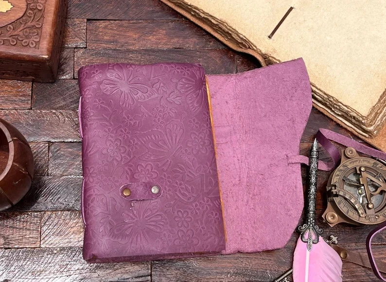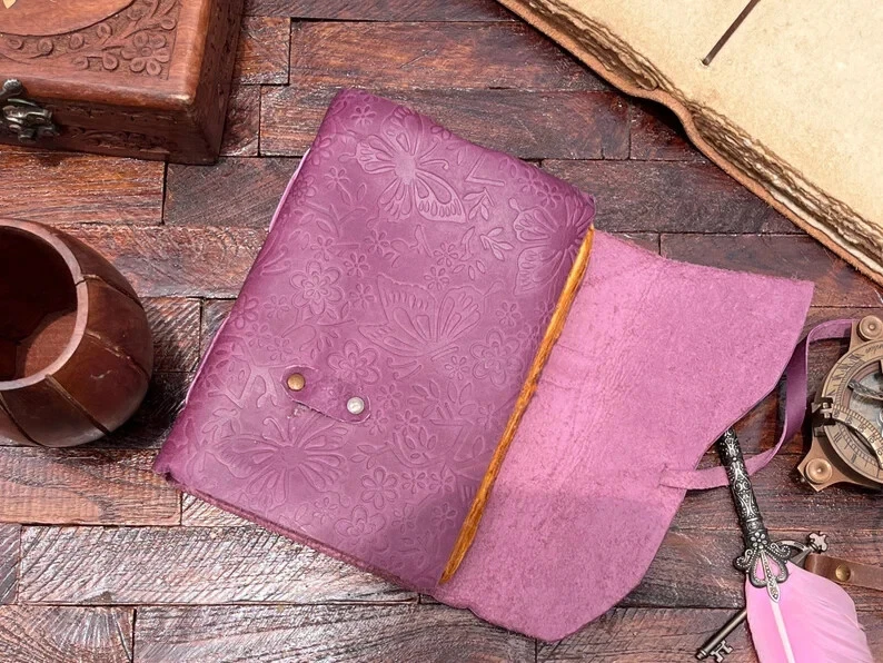 ★This Journal Is Made From A High Quality Leatherette With beautiful Butterfly Embossed Finish And Vintage Looking Paper ★ DIMENSIONS :- The Journal Is Available In 2 Perfect Sizes. 8 Inches" x 6 Inches. 7 Inches" x 5 Inches. ★ PAPER :-The Inside Of This Journal Is Handmade Decal Edge Paper That Looks Vintage And Well Stitched Whose Number Is 200 (Please Count Both side) If You Want White Plain Paper So Please Select Right Paper Option There Are Two Options Available. ★ HANDCRAFTED FROM GENUINE LEATHER: Each Journal Is Specially Designed And Handmade From Premium Leather. Artful Hand Stitching To Create A Timeless Space For Your Thoughts. ★ TELL YOUR STORY :- We Designed This Classic Leather Journal As A Time Capsule For Your Thoughts. Capture Your Important Memories, Accomplishments (And Failures), Life-Changing Moments And Evolving Dreams As A Keepsake To Reflect Upon In Years To Come. ★ THE PERFECT GIFT :-Quality You Can Trust: High-Quality Craftsmanship Makes This An Essential Tool For Poetry, Art, Sketching, Writing, Drawing, Calligraphy Leather Journal Give Your Loved Ones A Thoughtful Gift That Will Last For Years To Come! Great For A Birthday, Anniversary, Or Graduation