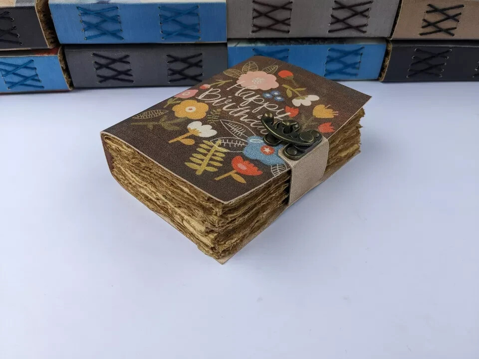 Vintage Leather Bound Birthday Journal - Handmade Antique Paper Notebook Diary & Sketchbook