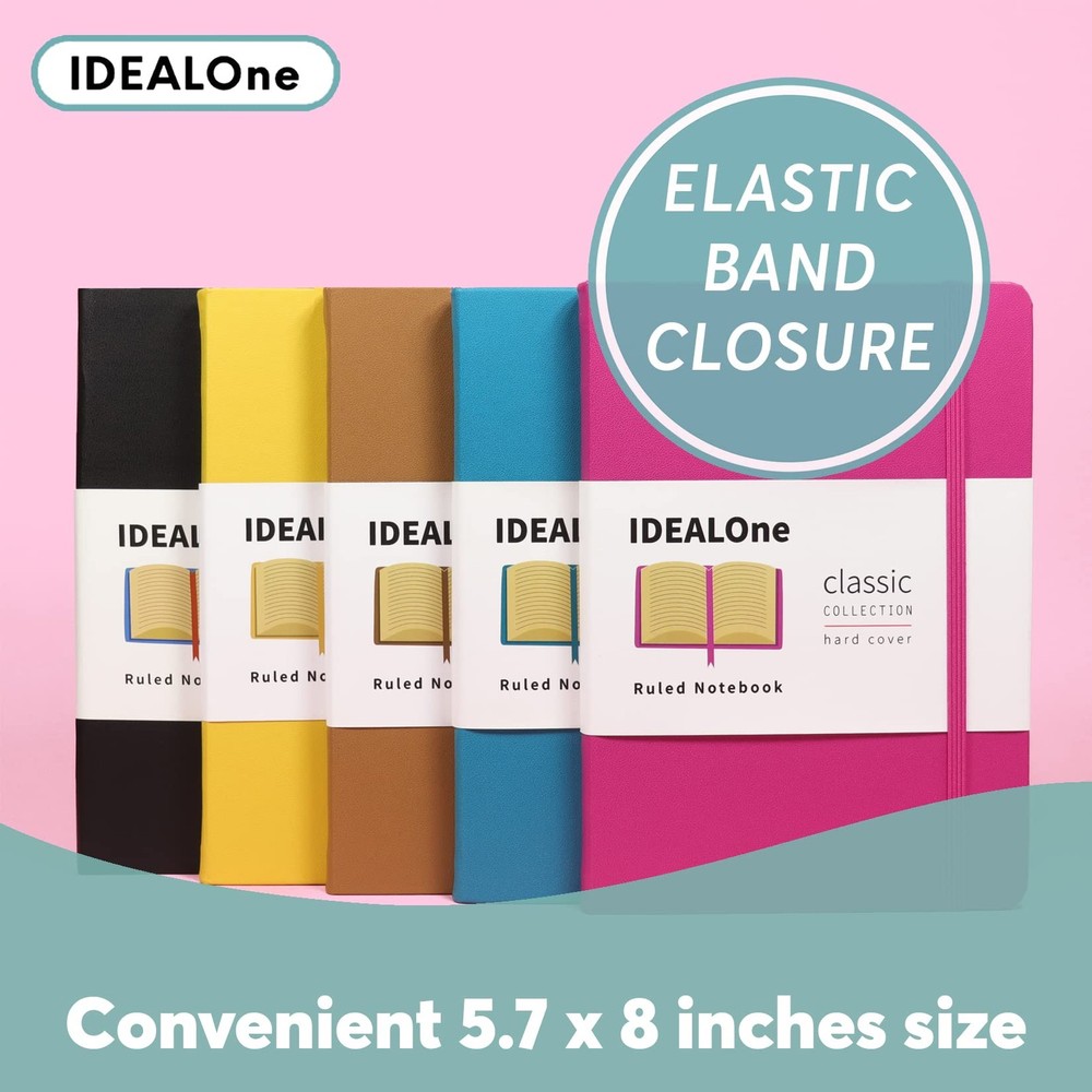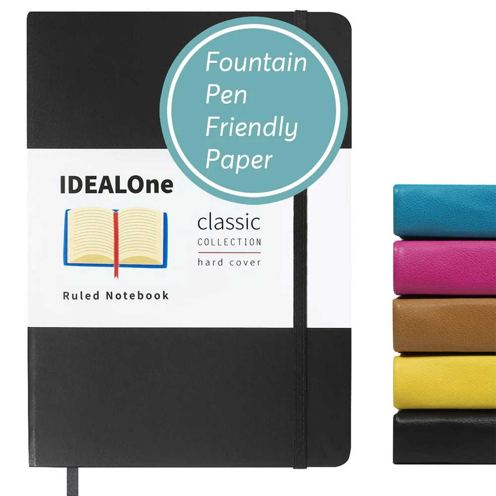 Record thoughts on-the-go With the Notebook Journal you can improve your creative writing skills, give your memory a boost or simply engage in a little self-reflection. Made with ivory colored 100GSM lined papers, this versatile notebook can be used as a bujo journal, daily journal or business notebook for meetings and workflow organization. Your writing can be as long or as short as you like, giving you more freedom to be creative than other note book journals. Create bullets, paragraphs or dated entries to suit any journaling need. Durable and Sophisticated Our black notebook lends a sleek and professional appearance to work notes, making it suitable for office use. Measuring 5.7 inches x 8 inches, it slips into a briefcase or desk drawer for storage and portability. The hard cover protects its beautiful ivory-colored pages from rips, stains and curling, while an elastic closure band safeguards your thoughts and inspirations from prying eyes. Use the color-coordinating ribbon bookmark to take you quickly to an important detail or to jot down a note at the next open line. Perfect for Everyone Notebook Journals are perfect for diarists of all ages. Give them as gifts for teen girls or to your favorite globetrotter to use as a travelers notebook. Keep one on your nightstand as a dream journal or give one as a work notebook to a new college graduate. Notebooks for journaling withstand the test of time so you can collect many volumes of reflections and thoughts, passing them along to your adult children as nostalgic family remembrances. Keep your thoughts organized for posterity. Add the Ruled Notebook for work and journaling to your cart today. NON INK BLEEDING QUALITY PAPER. Stylish and durable, our leather hardcover lined journal notebook offers the perfect space for collecting your most intimate thoughts, creative ideas, simply record your diary in this exquisite hard back notebook journal LAY FLAT THREAD-BOUND PAGES of thick ivory paper create an elegant backdrop for your diary entries, journals for men, and notebooks for women. This blank journal notebook opens 180 degrees for neater handwriting STURDY HARDBACK LEATHER NOTEBOOK has rounded corners to make it travel-friendly in your book bag or backpack. Use this small journal as a travel journal to chronicle your adventures or as a bible study journal, or bullet journal kit LEATHER BOUND JOURNAL with elastic band closure and ribbon bookmark also boasts an expanding pocket inside the back cover. Hold onto receipts, a few business cards or a motivational family photo in this A5 journal. ENDURING AND VERSATILE to suit all your journaling supplies for school, work, office or personal writing needs and also as perfect gifts for teens, men, women, or cute notebooks for kids as their must-have for writing pads, diaries, daily journal PROFESSIONAL JOURNAL for wedding planning, recipe notebook, meeting notebook for work, food journal, scrapbook, art journal, leather sketchbook, we have it all. Indulge in occasions for creative drawings and inspired expression.
