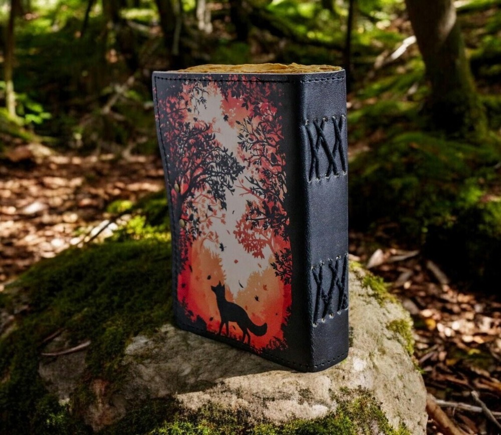 Handmade Fox Leather Journal Personalized Design: Customize your fox notebook for a unique touch. Eco-Friendly Materials: Crafted with sustainability in mind. Vintage Leather Diary: Timeless appeal for your writing needs. Perfect Gift for Fox Lovers: A thoughtful present for nature enthusiasts. Custom Leather Sketchbook: Ideal for sketches, notes, and ideas. Travel Journal: Take it on your adventures to capture memories. Rustic Leather Stationery: Adds charm and character to your writing. Perfect for Journaling: Great for daily reflections or planning. Artisan Crafted: Handmade quality for a special touch. ● THIS PRODUCT Print: Fox Print 7x5 Height: 7 inches Width: 5 inches Depth: 1.5 inches (including Leather binding)