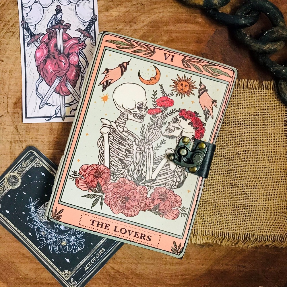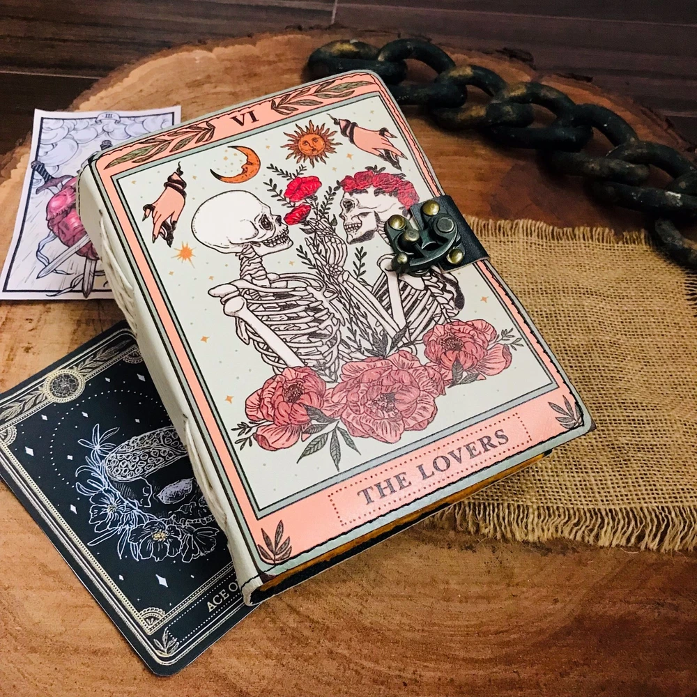 BEAUTIFULLY CRAFTED: Our handmade artisan leatherbound spellbook grimoire journals are crafted from genuine leather. The black colouring gives it a beautiful antique vintage feel. Being hand-made from natural leather. The cover features a beautiful gold designing. VINTAGE LOCK AND STURDY BINDING - The vintage clasp lock will keep all your valuable writing locked inside. Sturdy hand stitched binding to make sure that no paper comes out loose from your Spell BOOK. PERFECT FOR GIVING: Suitable for both men or women to write in, this locking diary daily travelers notebook is perfect for an avid writer, or Harry Potter fan looking for a magic spell book. Ideal to give as a birthday gift, valentines, halloween, graduation or wedding anniversary present. Spell Book Tarot Journal Merchandise Popsocket Grimoire Wiccan Witch Prop Spells Decor Skull Lovers Blank Notebook Gift Props Spellbook Blanks With Clasp Coloring Books For Men Women Adult and you can keep this journal at your bedside as like memory of your loved ones. USE ANY KIND OF PEN - Size: 6"X8" This Gothic gifts Sketch, Doodle, Write on your Book with a Calligraphy Pen Fountain Pen, Brush Pen, Ball Pen, Acrylic Colours, Watercolor and many more. We guarantee no bleed through. SIZE - 8X6 Inch. OUR PROMISE: We are positive you will love our products, but if you don't for any quality reason, we will replace or refund for up to 30 days after purchase. Our friendly customer service team are always available to answer any questions you might have. MANY USES - This aesthetic Lovers Journal Can be used as a Hocus Pocus gifts , the lovers tarot journal, gothic notebook, skull journal, spell books halloween decorations, book of spells halloween decor. grimoire spell book, drawing or sketching and compact for carrying in your bag. Ideal for alternative Artist Sketchbooks, Photo Album, Traveling Notes, Business Executive, Logbook, hocus pocus spell book , Journalists, Food Planner, old spell notebook, antique handmade skull journal