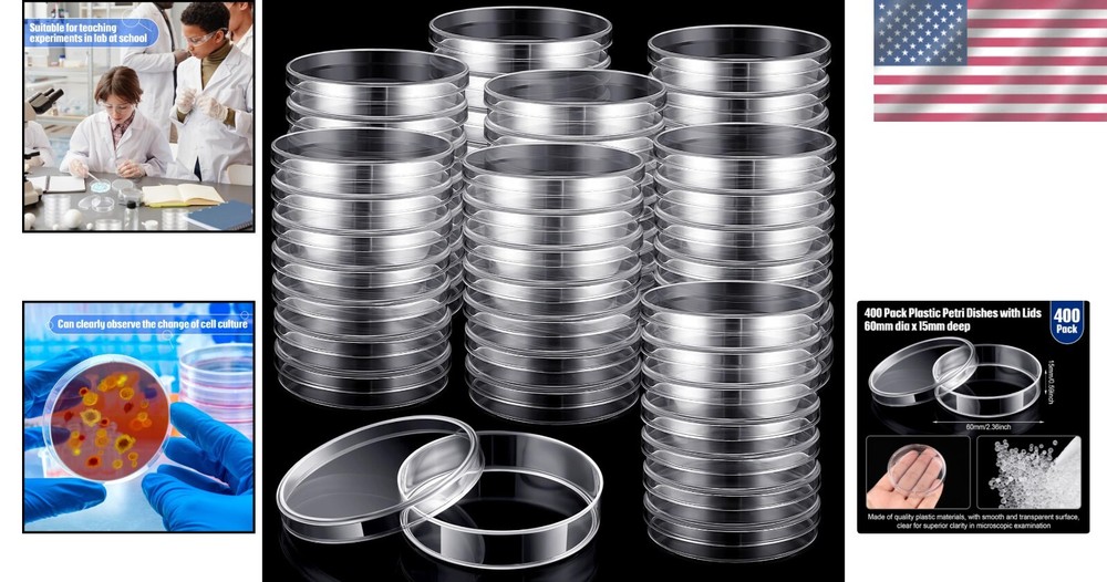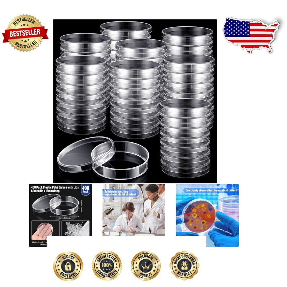 Bulk Pack of 400 Clear Plastic Petri Dishes with Lids - Ideal for Lab Analysis < class="slides"> ‹ › ‹ › ‹ › ‹ › ‹ › ‹ › ‹ › ‹ › ‹ › Bulk Pack of 400 Clear Plastic Petri Dishes with Lids Ideal for Lab Analysis Bulk pack includes 400 pieces of plastic petri dishes with lids, sufficient for daily science lab experiments and replacements. Made from reliable and sturdy plastic materials with a smooth, transparent surface, allowing for clear clarity during microscopic examination. Suitable for a wide range of applications including laboratory analysis, science projects, mycology studies, and training activities. Clear design enables easy observation; you can write with a marker and track changes in seed germination or cell culture effectively. Specifications: Each dish measures approximately 60 mm in diameter and 15 mm deep, perfect for scientific research or seed cultivation. Features: Sturdy and solid construction for reliability in various lab settings. Smooth surface for ease of use and better cleaning. Transparent body for high clarity necessary for microscopic examination. Versatile application across medical, biological, and educational fields. Package Includes: - 400 Sterile Petri Dishes with Lids Notes: - Please allow slight deviations due to manual measurement. - Allow for slight color differences on different monitors. - Heat exposure should be avoided to prevent melting. Why Choose Our Petri Dishes? If you are looking for high-quality, durable petri dishes that can withstand rigorous lab use, our Bulk Pack of 400 Clear Plastic Petri Dishes with Lids is the perfect choice. They provide excellent transparency for microscopic clarity, are made of reliable plastic materials, and are suitable for a multitude of scientific applications. Perfect for educational institutions, laboratories, and science enthusiasts alike, arm yourself with the best tools for exploration and discovery. Order your pack today and ensure you are always prepared for those important experiments! Shipping Free & Fast Shipping - We offer free shipping to most of the USA with a normal delivery time of 3-7 days. However, due to the current situation, additional delivery time (up to 3 weeks) may be required for some items. Alternative Carriers - We may use alternative carriers (e.g. USPS, FedEx, UPS, etc.) to ensure your package arrives safely and on time. Due to the use of multiple carriers, we are unable to provide a tracking number automatically. Handling Time - Orders are processed and shipped within 1-2 business days of receiving cleared payment. Shipping Restrictions - Shipping to Alaska, Hawaii, Puerto Rico, Guam, and other US territories may incur shipping charges or delivery restrictions. Please contact us before ordering, or your order can be refunded/cancelled. State Restrictions - There may be restrictions based on your state of purchase. For example, certain items may not be shipped to California due to state regulations. Contact for Tracking Updates - If you require tracking updates or have any concerns about the delivery of your order, please feel free to contact us, and we will be happy to assist you. Return 30-Day Hassle-Free Returns - We want you to be completely satisfied with your purchase. If you are not, you can return the item within 30 days of receiving it for a full refund or exchange. Easy Return Process - To start a return, simply contact us and we will provide you with a prepaid return shipping label and detailed instructions. Restocking Fee - There are no restocking fees for returns. However, the buyer is responsible for return shipping costs if the return is not due to a seller's error. Refund Processing Time - Refunds will be processed within 5 business days of receiving the returned item in its condition. Payment We accept all major credit cards, PayPal, and Apple Pay for your convenience. Your payment information is secure and encrypted to ensure a safe and seamless transaction. Please complete your payment within 3 days of purchase to avoid any delays in shipping. Feedback Your feedback is extremely important to us. We strive to provide the best products and customer service possible. If you are satisfied with your purchase, please take a moment to leave us a positive review. If you have any concerns or issues with your order, please contact us before leaving negative feedback. We are committed to resolving any problems and ensuring your satisfaction. Contact Us If you have any questions or concerns, please feel free to out to our customer support team. You can contact us through the eBay messaging system. We are available Monday to Friday, 9:00 am to 5:00 pm EST, and we will do our best to respond to your inquiry within 24 hours. Buy it now and enjoy a pleasant shopping experience! Diameter: 60mm Depth: 15mm Unit Quantity: 400 Intended Use/Discipline: Microbiological Laboratory,Laboratory analysis,Science projects,Mycology studies,General training,Science theme parties Material: Polystyrene Unit Type: Unit
