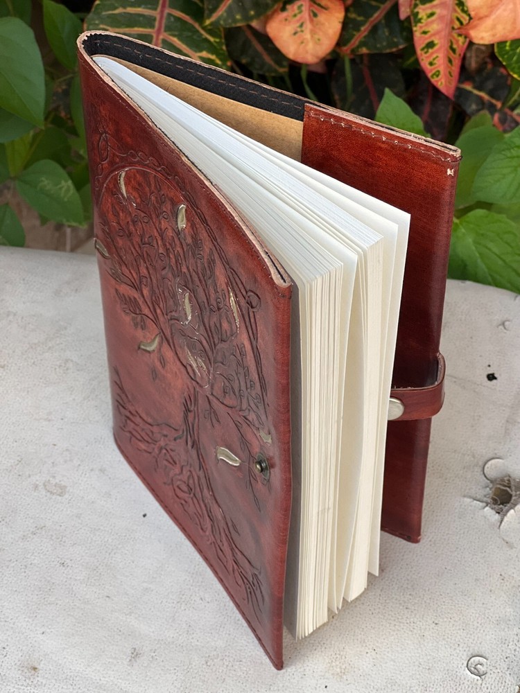 UNIQUE HANDMADE VINTAGE JOURNAL- This Vintage Journal is made with purely handmade papers and gives a rich antique look. It looks and shows as it was pulled from the history. We assure you that you will fall in love with the antique handmade journal. Size 6X9X2 *WRITING- Sketch, Doodle, Write and use any kind of a Calligraphy Pen Fountain Pen, Brush Pen, Ball Pen, Acrylic Colours, Watercolor and many more. *PREMIUM SOFT THICK GENUINE LEATHER - This leather Journal is made from naturally tanned full grain Bull leather which feels and smells great. The Journal is totally soft and very easy to use *BINDING AND LEATHER WRAPAROUND - Beautifully handcrafted and hand stitched binding to make sure that no paper comes out loose from your vintage notebook. *USAGE: Perfect Gift For Friends And Family! Grimoire Leather Journal with Key - Deckle Edge Vintage Paper Bound Journal - Book of Shadows Journal - Leather Sketchbook - Great Gift