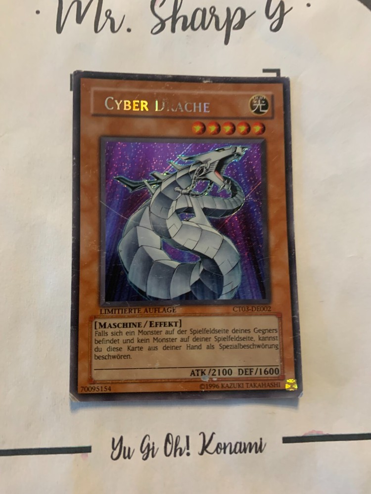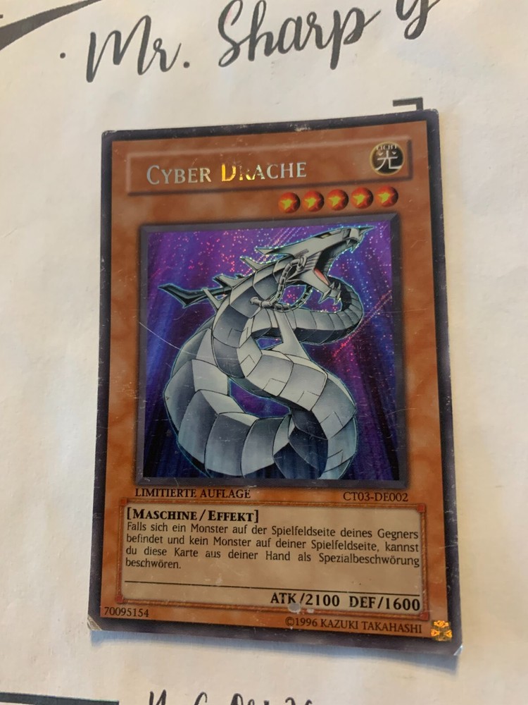- Mr. Sharp G - - Online Store - TRADING CARDS-TCG-COLLECTION-SETS-TOURNAMENT-Yu Gi Oh! Konami * * * CYBER DRACHE - LIMITIERTE AUFLAGE CT03-DE002 - Bitte schauen Sie sich die beigefügten Bilder an, um einen vollständigen Überblick über den Zustand jedes Artikels zu erhalten. - Zustand des Artikels: Gebraucht - in einem beschädigtem Zustand. - Typ/ Serie: MASCHINE / EFFEKT / LIMITIERTE AUFLAGE CT03-DE002 - Seltenheitsstufe/ Rarity: SECRET RARE - Edition : COLLECTOR'S TINS 2006 * * * + Kartenschutzhülle & Toploader inklusiver im Preis + mehrfache Bestellung = einmalige Versandkosten + versicherter Versand Bestellung in Höhe - v. 8,50EUR in Deutschland/ Inland - v. 12,50EUR im Ausland/ International + Großbestellungen kostenloser Versand Inland und International - Bei Fragen, Details, nicht im Bestand gewünschte Karten/ Artikel oder Versandgutschriften schreiben Sie uns! Wir freuen uns auf Ihre Nachricht! - Vielen Dank für Ihr Vertrauen, Unterstützung und Besuch in unserem Store ! - Ihr Mr. Sharp G Team