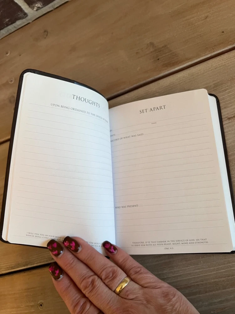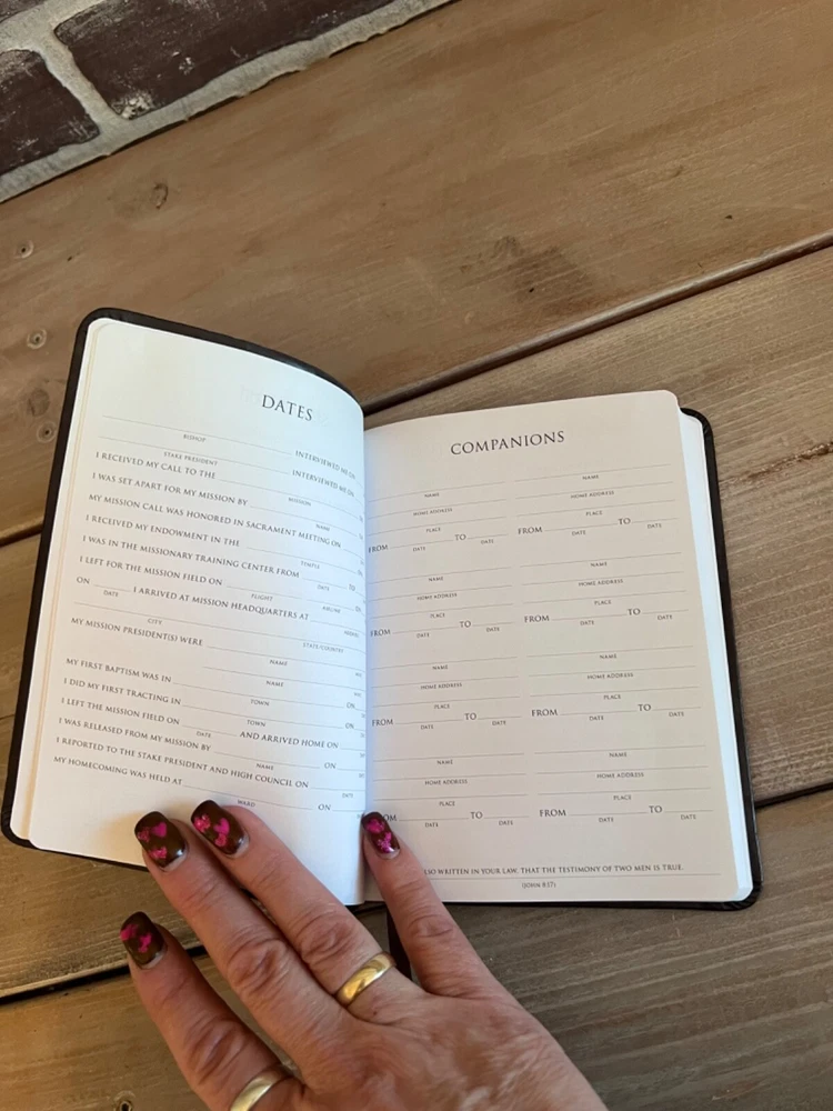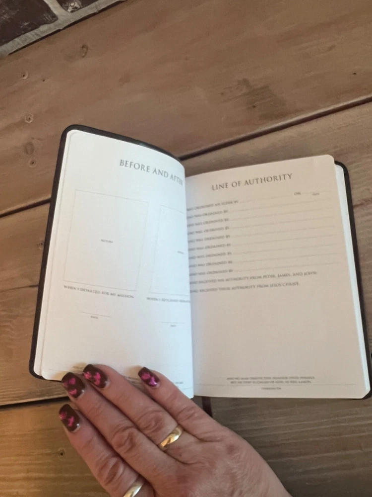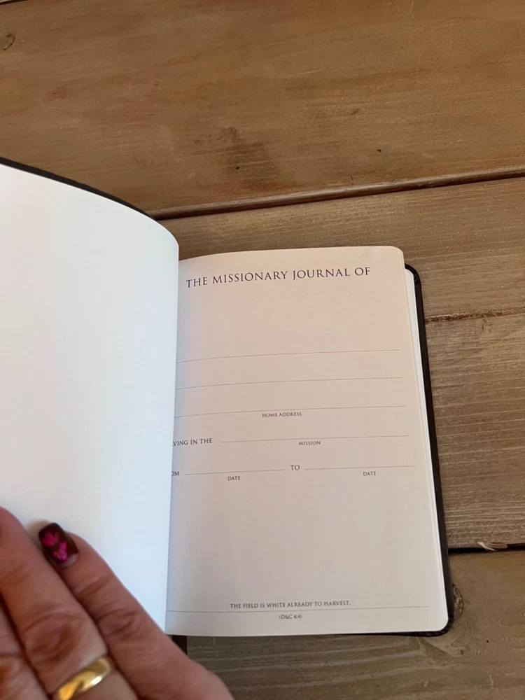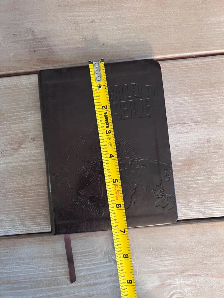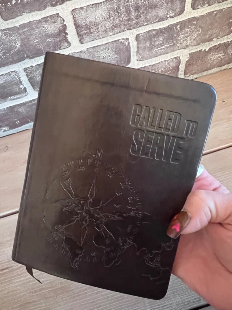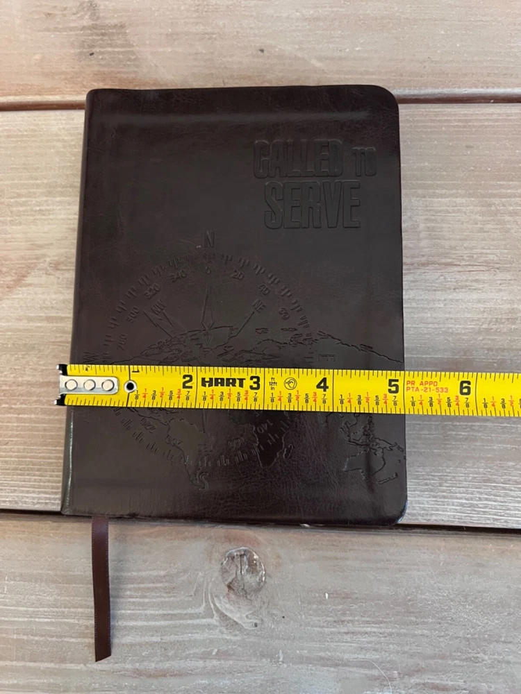 This is an unused Missionary Journal with "Called to Serve" with compass and globe imprinted on the front. There are pages on the inside that allow the missionary to document important information to create a legacy book of information of their time in the mission field. This is for the LDS mission.