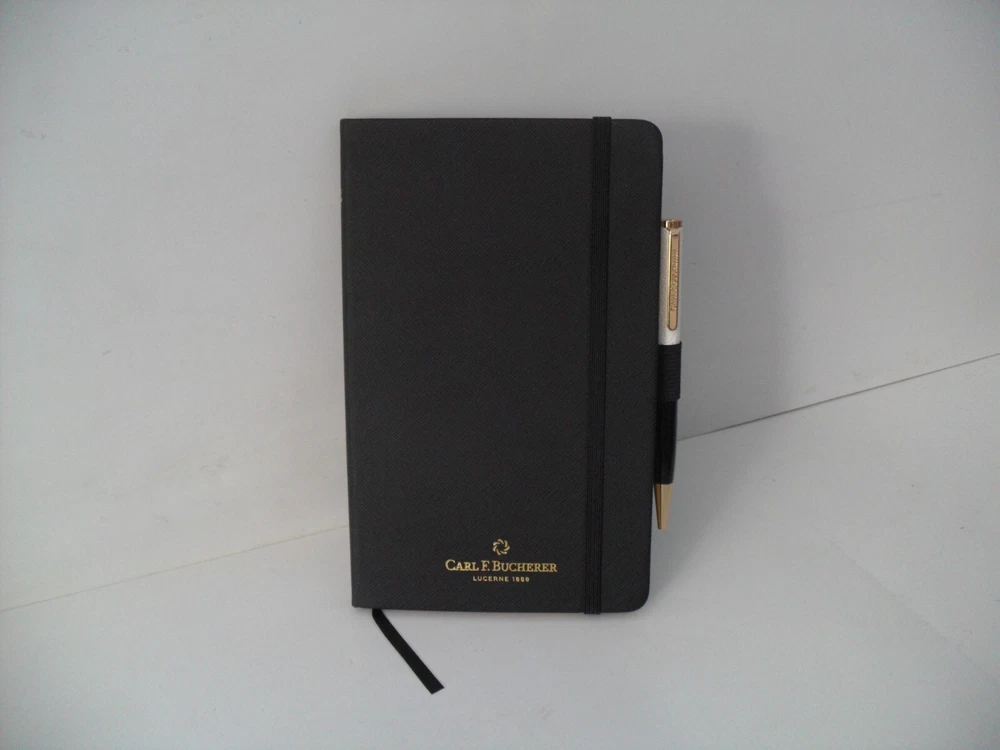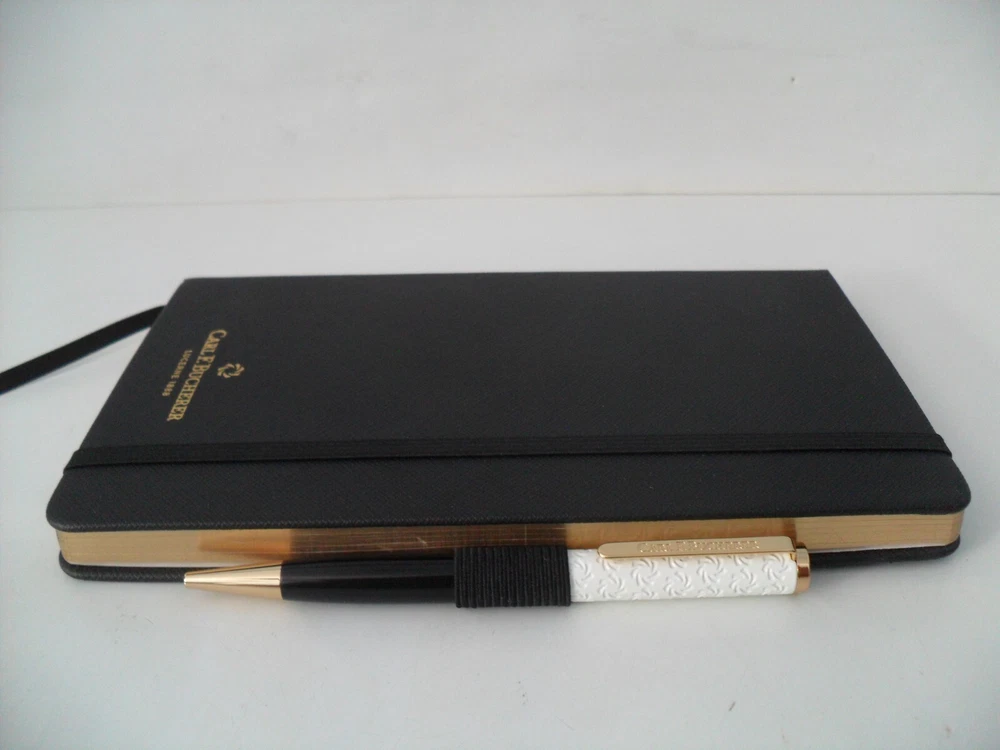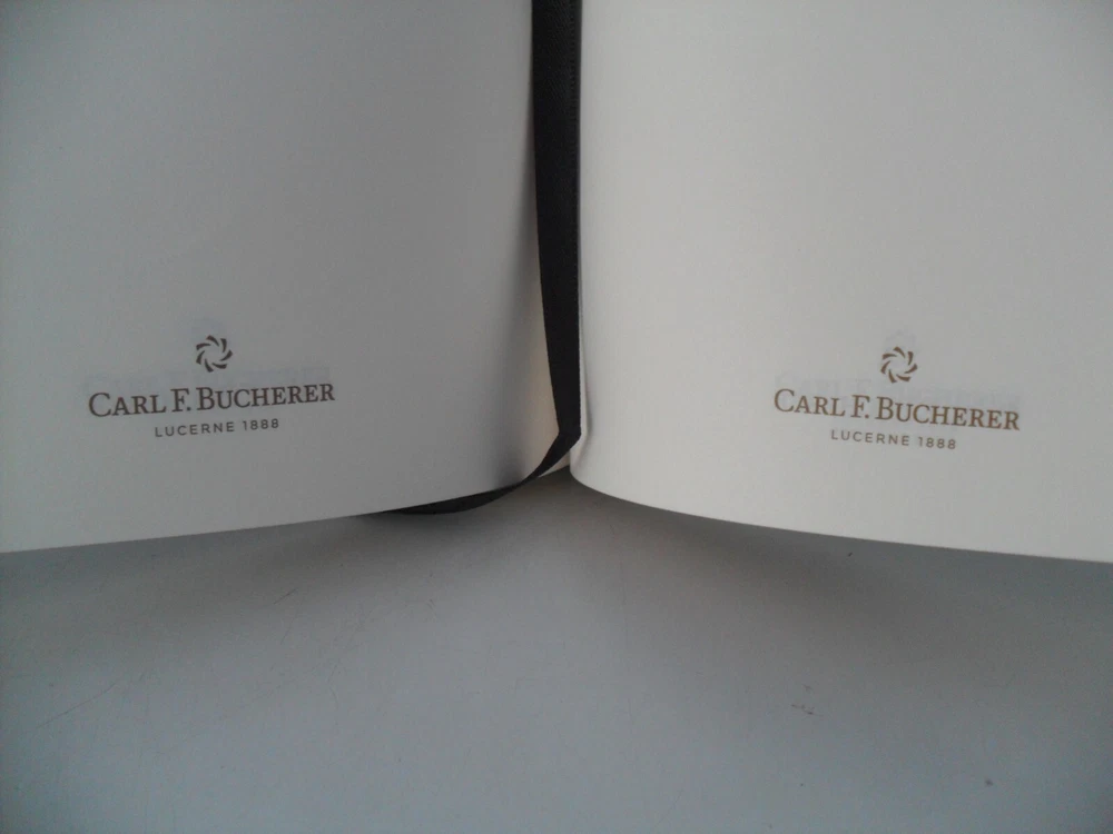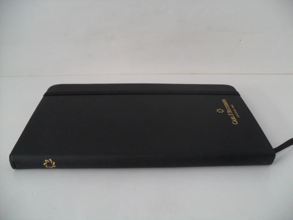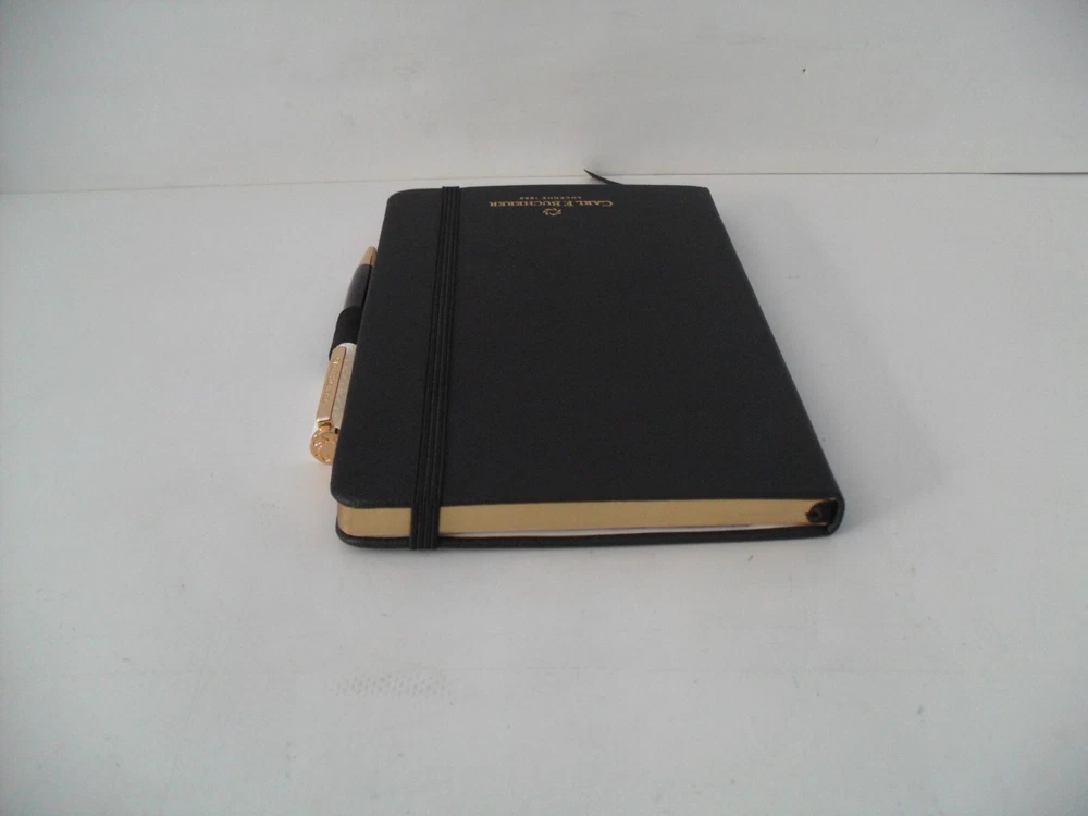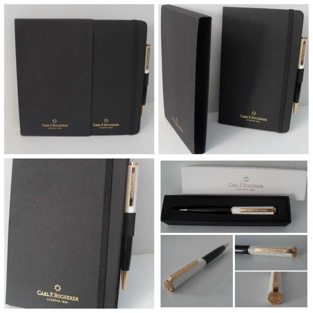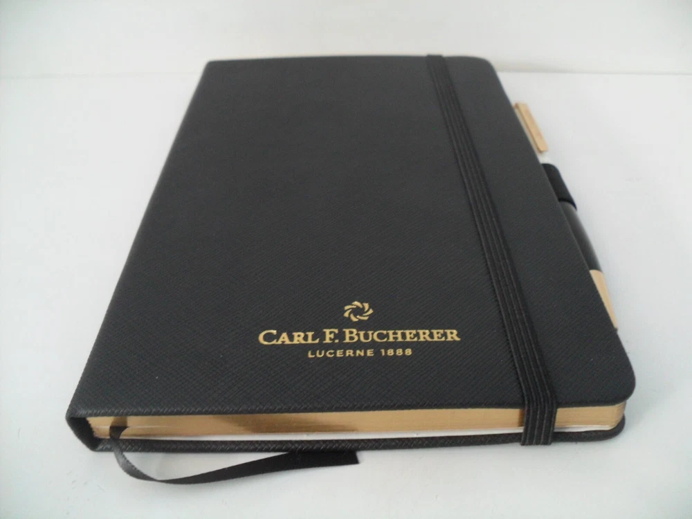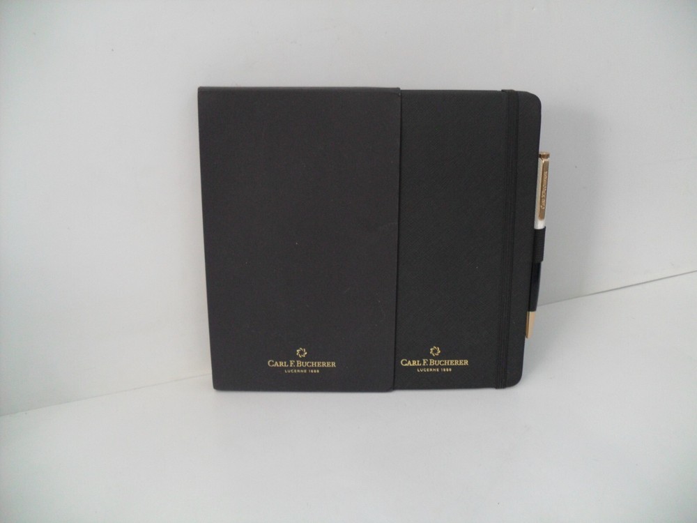 This is a Beautiful Set - Authentic Carl F. Bucherer Journal and Stunning Luxury Pen . This Very Rare was never available for sale - This was only available to VIP's at Baselworld inthe Mid-2010's. Both the Journal and Pen are Brand New - Never Used - Excellent Condition! JOURNAL: Journal is Black Leather Hard Bound Cover wth Gold Foil Page Edges. The Leather Cover Features the Iconic Block Letter "CARL F. BUCHERER - LUCERNE 1888" Logo Along With the "twirling cirle" Logo Embossed in Gold Foil. 200 Un-Lined Pages With Each Page Featuring the Block Letter "CARL F. BUCHERER - LUCERNE 1888" Logo Along With the "twirling cirle" Logo. Two Expandable Pocket Holders Attached Inside Back Cover - For Business Cards, Brochures, Etc... (See Photos - Very Nice Addition). Elastic Journal Safety Closure Band Pen Holder. Attached Ribbon Book Mark. Includes Slip Dust Cover with Gold Foil Logo. Measures 5" X 8.25" When Closed. PEN: Luxury Pen - Beautiful Polished Black Resin Lower Barrel and Polished White Upper Barrel With Gold Trim - Very Beautiful Pen! The Upper Barrel (White Polished Resin) Features a Word Cloud Logo Design Featuring the Carl F. Bucherer "twirling circle" Logo Engraved in the Barrel - Very Nice! The Gold Trim Shirt Clip Features the Iconic Block Letter "CARL F. BUCHERER" Logo Engraved in the Clip - The End of the Clip Features the "twirling circle" Logo Engraved in the Cap. Includes Original Gift Box Featuring the Block Letter "CARL F. BUCHERER - LUCERNE 1888" Logo Along With the "twirling cirle" Logo Embossed in Gold Foil. Non-Smoking Home Listing and template services provided by inkFrog