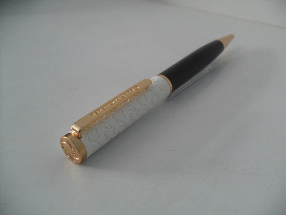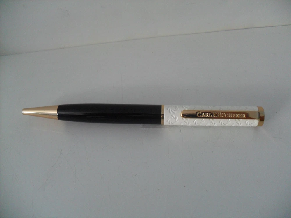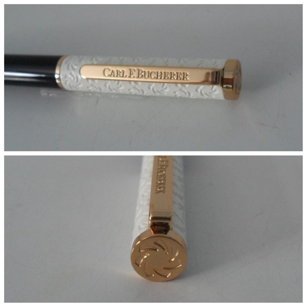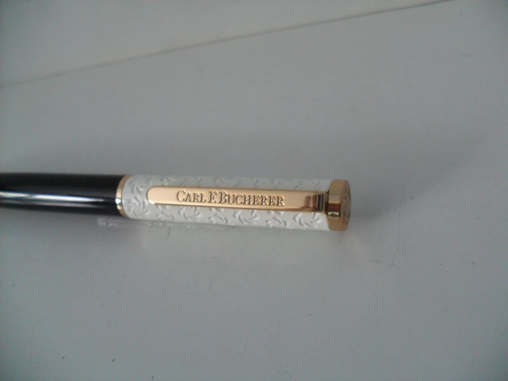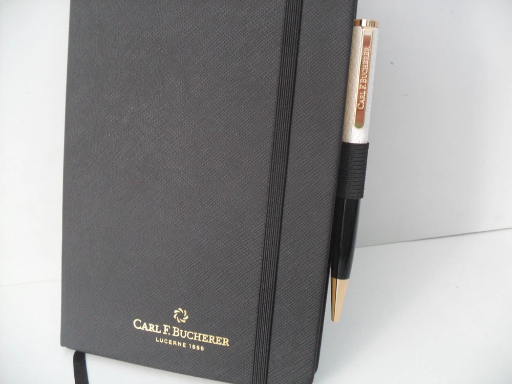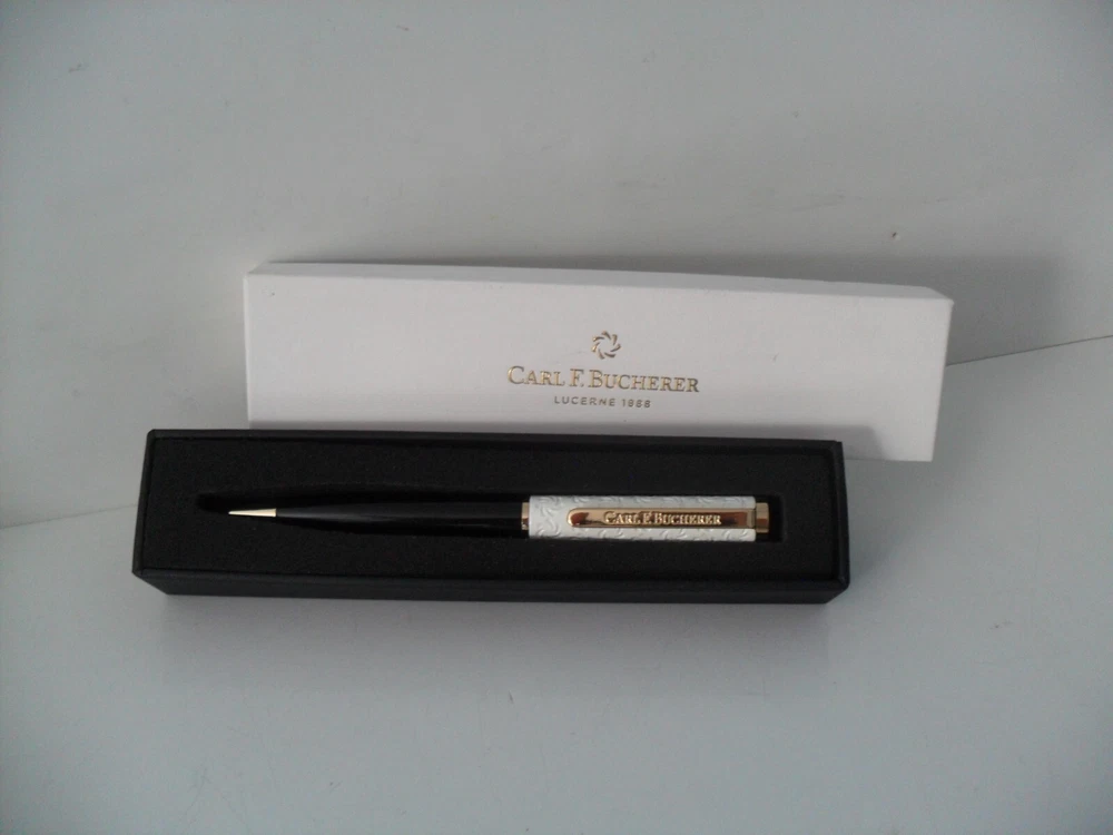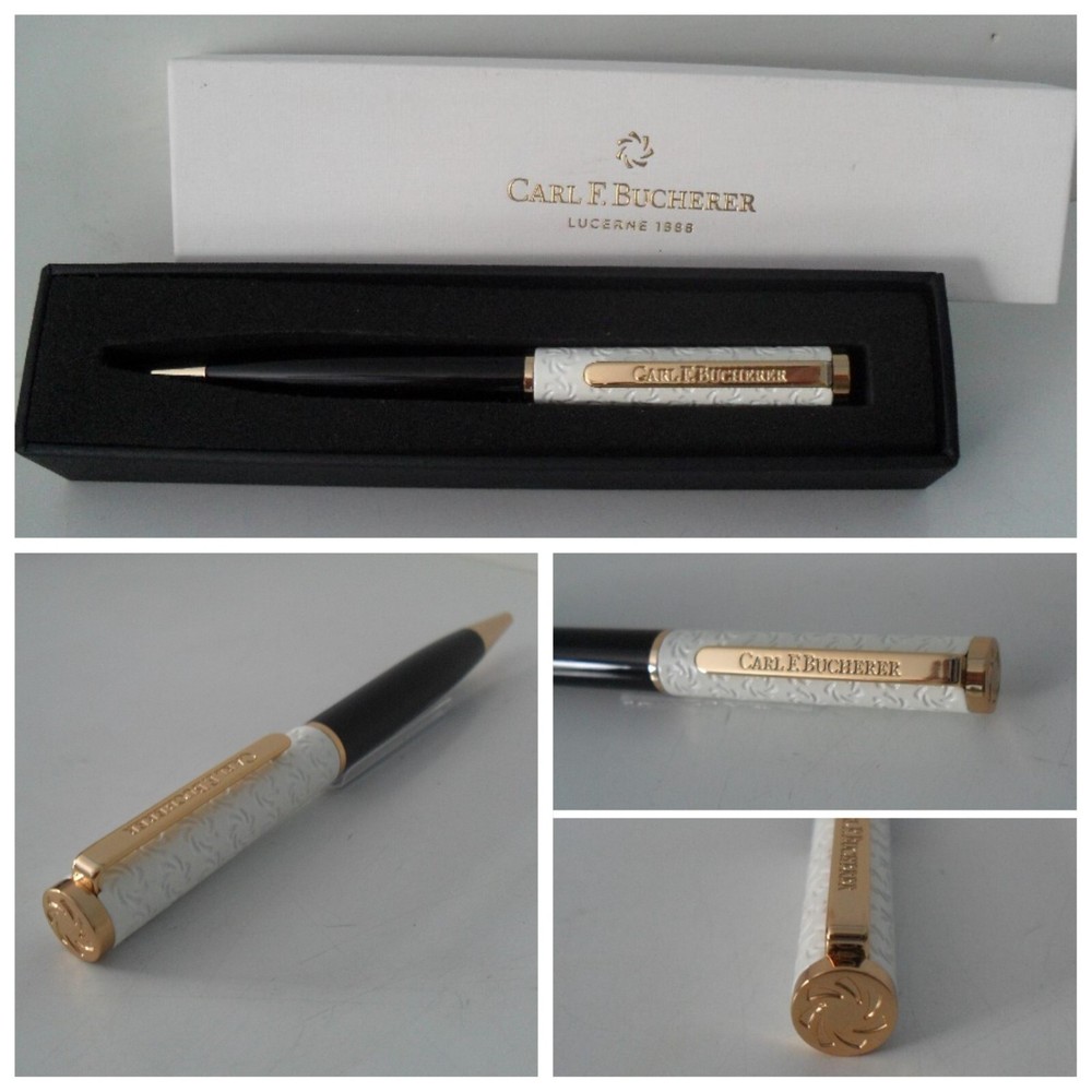 This is a Beautiful Set - Authentic Carl F. Bucherer Journal and Stunning Luxury Pen . This Very Rare was never available for sale - This was only available to VIP's at Baselworld inthe Mid-2010's. Both the Journal and Pen are Brand New - Never Used - Excellent Condition! JOURNAL: Journal is Black Leather Hard Bound Cover wth Gold Foil Page Edges. The Leather Cover Features the Iconic Block Letter "CARL F. BUCHERER - LUCERNE 1888" Logo Along With the "twirling cirle" Logo Embossed in Gold Foil. 200 Un-Lined Pages With Each Page Featuring the Block Letter "CARL F. BUCHERER - LUCERNE 1888" Logo Along With the "twirling cirle" Logo. Two Expandable Pocket Holders Attached Inside Back Cover - For Business Cards, Brochures, Etc... (See Photos - Very Nice Addition). Elastic Journal Safety Closure Band Pen Holder. Attached Ribbon Book Mark. Includes Slip Dust Cover with Gold Foil Logo. Measures 5" X 8.25" When Closed. PEN: Luxury Pen - Beautiful Polished Black Resin Lower Barrel and Polished White Upper Barrel With Gold Trim - Very Beautiful Pen! The Upper Barrel (White Polished Resin) Features a Word Cloud Logo Design Featuring the Carl F. Bucherer "twirling circle" Logo Engraved in the Barrel - Very Nice! The Gold Trim Shirt Clip Features the Iconic Block Letter "CARL F. BUCHERER" Logo Engraved in the Clip - The End of the Clip Features the "twirling circle" Logo Engraved in the Cap. Includes Original Gift Box Featuring the Block Letter "CARL F. BUCHERER - LUCERNE 1888" Logo Along With the "twirling cirle" Logo Embossed in Gold Foil. Non-Smoking Home Listing and template services provided by inkFrog