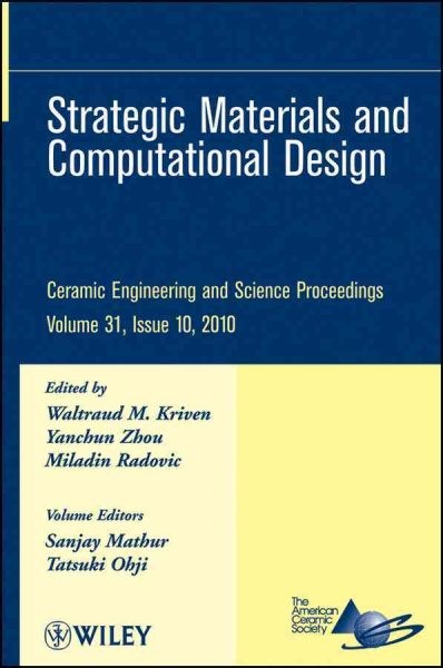 Ceramic Engineering and Science Proceedings : Strategic Materials and Computational Design, Hardcover by Kriven, Waltraud M.; Zhou, Yanchun; Radovic, Miladin; Mathur, Sanjay, ISBN 0470921919, ISBN-13 9780470921913, Brand New, Free shipping in the US Contributions from three Focused Sessions that were part of the 34th International Conference on Advanced Ceramics and Composites (ICACC), in Daytona Beach, FL, January 24-29, 2010 are presented in this volume. The broad range of topics is captured by the Focused Session titles, which are listed as follows: FS1 - Geopolymers and other Inorganic Polymers; FS3 - Computational Design, Modeling Simulation and Characterization of Ceramics and Composites; and FS4 - Nanolaminated Ternary Carbides and Nitrides (MAX Phases). <p>The session on <a id="OLE_LINK2" name="OLE_LINK2"></a><a id="OLE_LINK1" name="OLE_LINK1">Geopolymers and other Inorganic Polymers</a> continues to attract growing attention from international researchers (USA, Australia, France, Germany, Italy, Czech Republic, and Viet Nam) and it is encouraging to see the variety of established and new applications being found for these novel and potentially useful materials. The session organizer gratefully acknowledges the support of the US Air Force Office of Scientific Research (AFOSR) through Dr. Joan Fuller. The AFOSR has continuously supported these conferences since the first meeting in Nashville, TN in 2003.</p> <p>Focused Session 3 was dedicated to design, modeling, simulation and characterization of ceramics and composites. 27 technical papers were presented on prediction of crystal structure and phase stability, characterization of interfaces and grain boundaries at atomic scale, optimization of electrical, optical and mechanical properties, modeling of defects and related properties, design of materials and components at different length scales, application of novel computational methods for processing. Four of these papers are included in this issue of CESP.</p> <p>Focused Session 4 was dedicated to MAX phases - a class of ternary carbides and nitrides with nanolaminated structure and general formula Mn+1AXn (where M is an early transition metal, A is an A-group element from IIIA to VIA, X is either C or N, and n=1, 2, 3 …). The MAX phases have attracted recently a lot of attention because they possess unique combination of metallic- and ceramic-like properties. In all, 30 technical papers were presented during this session. Four of these papers are included in this issue.</p>