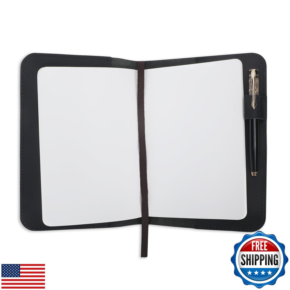 CestAntiQ, A5 Leather journal cover, Refillable Journal Cover for Large and Medium A5, Leather Handmade Notebook Cover, 9 x 6 Inches Leather Bound Journal (Green) Features REFILLABLE JOURNAL COVER WITH MOST A5 NOTEBOOKS - Compatible with almost all the A5 notebooks on the market, like the popular Medium A5 (5.75"x8.25"), Large (5" x 8.25"), Planner, etc. HANDMADE FULL GRAIN LEATHER - CestAntiQ Journal Cover is hand cut and handcrafted using the highest quality. The quality of this leather ensures a long lasting life and durability. RUSTIC AND STYLISH - This Leather Journal & Notebook cover adds a stylish and professional look whether you use it at the office, College or at home. CestAntiQ LEATHER QUALITY - Durable leather products are made with care and craftsmanship, with every item handmade to the highest standard. LIGHTWEIGHT AND PORTABLE - Slim, soft, and light, the Cahier journal suits any occasion, providing a lightweight, portable notepad that is easy to use on the go. GREAT GIFT- Journal Cover will make an excellent gift for friends, family and loved ones. Built to last a lifetime, this Cover will make a thoughtful, long lasting gift for anyone and everyone who loves writing, reading, journalists and travelers alike Shipping Free & Fast Shipping: We offer free shipping to most of the USA with a normal delivery time of 3-7 days. However, due to the current situation, additional delivery time (up to 3 weeks) may be required for some items. Alternative Carriers: We may use alternative carriers (e.g., USPS, FedEx, UPS) to ensure your package arrives safely and on time. Due to the use of multiple carriers, we are unable to provide a tracking number automatically. Handling Time: Orders are processed and shipped within 1-2 business days of receiving cleared payment. Shipping Restrictions: Shipping to Alaska, Hawaii, Puerto Rico, Guam, and other US territories may incur shipping charges or delivery restrictions. Please contact us before ordering, or your order can be refunded/cancelled. State Restrictions: Certain items may not be shipped to California due to state regulations. Contact for Tracking Updates: If you require tracking updates or have any concerns about the delivery of your order, please feel free to contact us, and we will be happy to assist you. Return Policy 30-Day Hassle-Free Returns: If you are not completely satisfied with your purchase, you can return the item for free within 30 days of receiving it for a full refund or exchange. Easy Return Process: Contact us, and we will provide you with a prepaid return shipping label and detailed instructions. No Restocking Fee: There are no restocking fees for returns. However, the buyer is responsible for return shipping costs if the return is not due to a seller's error. Refund Processing: Refunds will be processed within 1 business day of receiving the returned item in its original condition. Payment We accept all major credit cards, PayPal, and Apple Pay for your convenience. Your payment information is secure and encrypted to ensure a safe and seamless transaction. Please complete your payment within 3 days of purchase to avoid any delays in shipping. Feedback Your feedback is extremely important to us. We strive to provide the best products and customer service possible. If you are satisfied with your purchase, please take a moment to leave us a positive review. If you have any concerns or issues with your order, please contact us before leaving negative feedback. We are committed to resolving any problems and ensuring your satisfaction. Contact Us If you have any questions or concerns, please feel free to reach out to our customer support team. You can contact us through the eBay messaging system. We are available Monday to Friday, 9:00 am to 5:00 pm EST, and we will do our best to respond to your inquiry within 24 hours. Thank you for supporting our small family business!