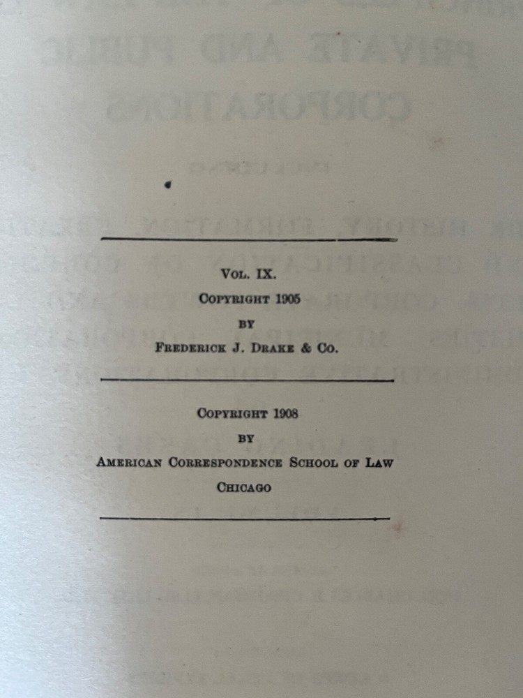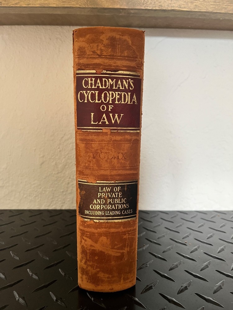 Chadman's Cyclopedia Of Law Book Vol IX Law of Private and Public Corp. 1905 Estate Sale Find! Cover is beat up a bit - pages are great! Pics are part of description so make sure to take a look - reach out with any questions! Shipping Savings! Before purchasing multiple items from my store make sure to select Request total from seller in the shopping cart. I will send you an invoice with combined shipping - Super easy. Check out my store! https://www.ebay.com/str/retrorevivalcool Most items ship in 1 day - Handling time states 2 due to Holidays.